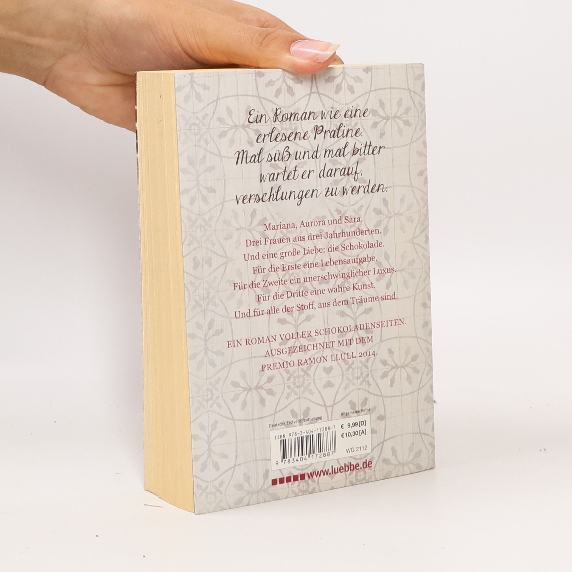 Mariana, Aurora und Sara. Drei Frauen aus drei Jahrhunderten. Und eine große Liebe: die Schokolade. Für die Erste eine Lebensaufgabe. Für die Zweite ein unerschwinglicher Luxus. Für die Dritte eine wahre Kunst. Und für alle der Stoff, aus dem Träume sind. Ein Roman voller Schokoladenseiten. Ausgezeichnet mit dem Premio Ramon Llull 2014.