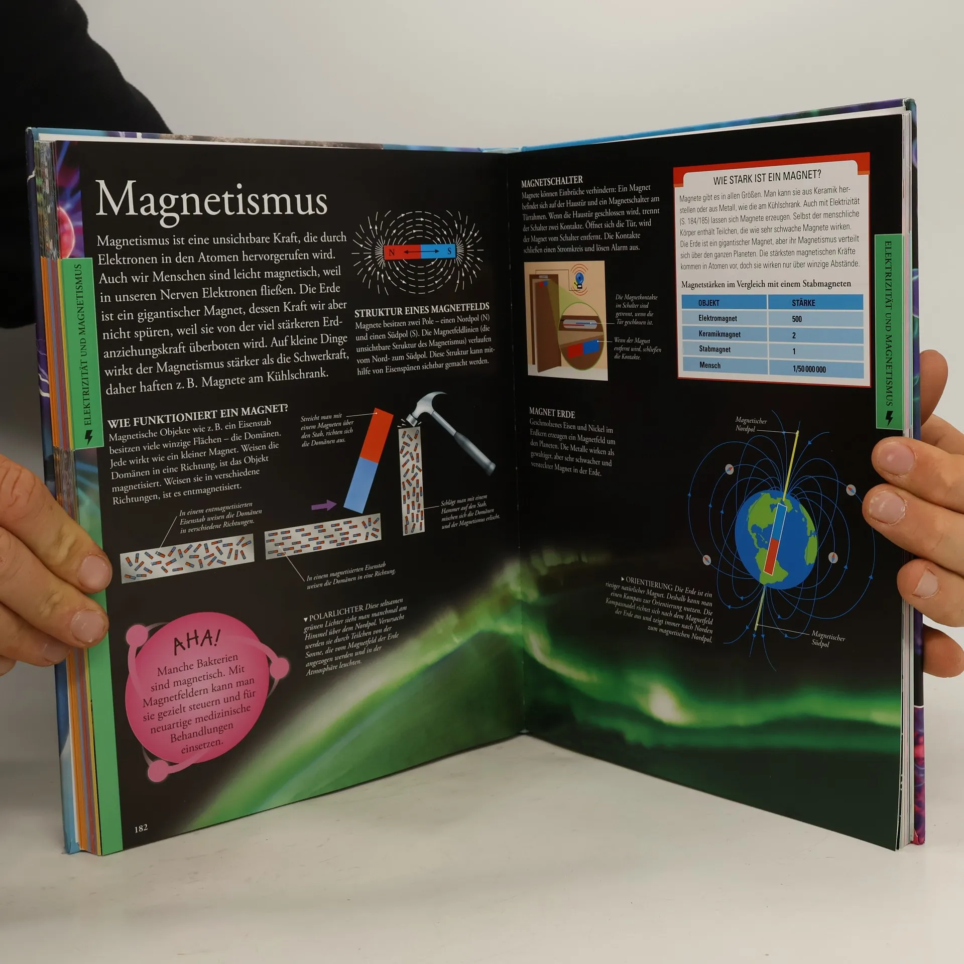 Wissensvermittlung – das klingt schon schrecklich altmodisch. Ganz im Gegensatz dazu steht jedoch das Lexikon „Naturwissenschaften für clevere Kids“, das Wissen spannend und auf moderne Art und Weise vermittelt. Dabei ist es nicht nur für Schüler interessant, sondern auch ganz allgemein visuell so gut aufbereitet, dass man immer wieder gerne einen Blick hinein wirft. Als Teil der erfolgreichen Reihe „Wissen für clevere Kids“ werden zunächst grundlegende Fragen geklärt: Was ist Materie? Oder wie ist ein Atom aufgebaut? Weiterhin werden zentrale Fragen aus Chemie, Physik und Biologie behandelt. Insgesamt finden sich darin weit über 1.500 Grafiken und viele davon großformatig auf Doppelseiten: So können die Besonderheiten aus Natur und Technik ansprechend präsentiert werden, wie zum Beispiel eine gigantische Tunnelbohrmaschine, stark vergrößerte Schneekristalle oder ein leuchtendes Glühwürmchen. Zahlreiche Übersichtskästen, die wichtige Fakten zu chemischen Reaktionen, optischen Linsen oder Tierklassen aufführen, ergänzen den Text. Komplettiert wird das Lexikon durch ein umfangreiches Glossar im Anhang sowie eine ausführliche Chronik der wichtigsten wissenschaftlichen Durchbrüche und Erfindungen. „Naturwissenschaften für clevere Kids“ ist damit weit mehr als nur ein Nachschlagewerk. Es ist moderne Wissensvermittlung, die Lust am Lernen und Entdecken schafft. Dieses Buch ist bei Antolin. de verfügbar.