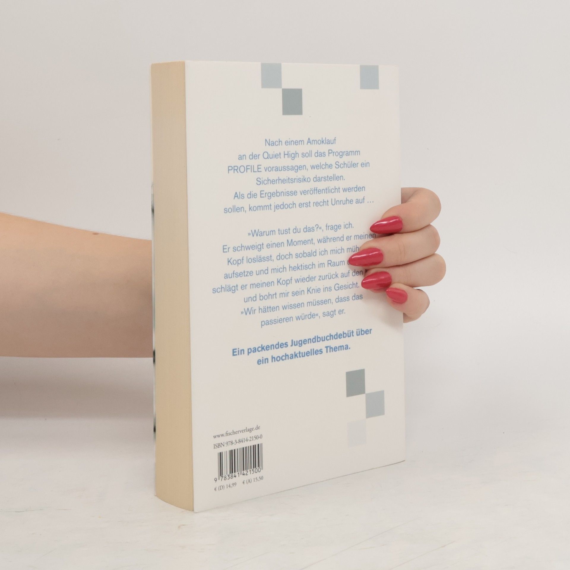 Ein packendes Jugendbuchdebüt über ein hochaktuelles Thema Nach einem Amoklauf an der Quiet High soll das Programm PROFILE voraussagen, welche Schüler ein Sicherheitsrisiko darstellen. Als die Ergebnisse veröffentlicht werden sollen, kommt jedoch erst recht Unruhe auf … »Ich hebe den Kopf so weit ich kann, bis mein Hals ganz gestreckt ist. Meine Hände sind auf dem Rücken gefesselt.„Warum tust du das?“, frage ich.Er schweigt einen Moment, während er meinen Kopf loslässt, doch sobald ich mich mühsam aufsetze und mich hektisch im Raum umblicke, schlägt er meinen Kopf wieder zurück auf den Boden und bohrt mir sein Knie ins Gesicht.„Wir hätten wissen müssen, dass das passieren würde“, sagt er. „Es wurde vorhergesagt. Von PROFILE“«