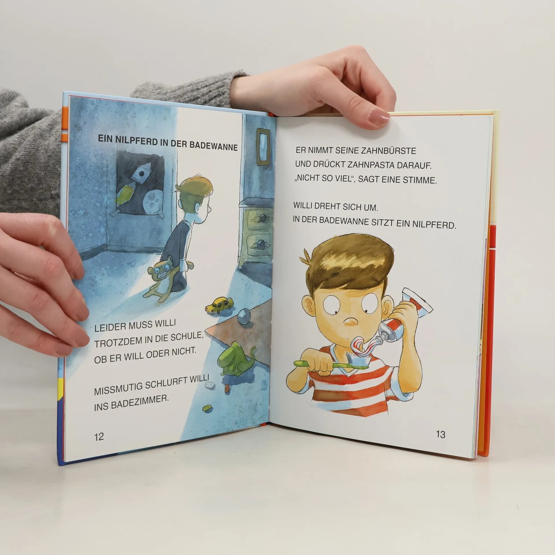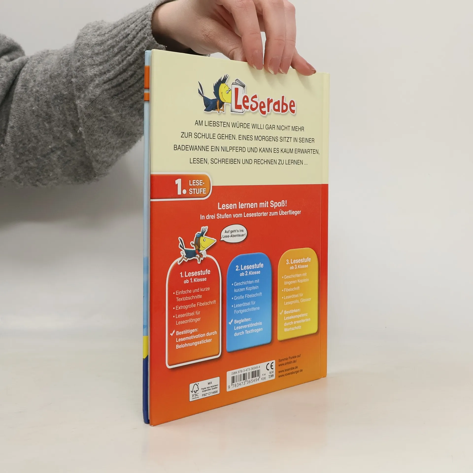 Willi möchte nicht zur Schule gehen. Immer müssen alle brav sein, wie langweilig! Und der Platz neben ihm ist auch noch frei. Das ändert sich, als eines Tages ein Nilpferd in der Wanne sitzt und mit in die Schule geht. Endlich hat Willi einen Nachbarn! Und das Nilpferd ist alles andere als brav. Die Lehrerin eilt deshalb zum Direktor. Doch als sie zurückkommen, ist das Nilpferd weg. Schade, aber nun setzt sich ein Junge neben Willi. Lesen lernen wie im Flug! Die Kinderbücher der Reihe Leserabe – 1. Lesestufe wurden mit Pädagogen entwickelt und richten sich an Leseanfänger ab der 1. Klasse. Kurze Texte in großer Fibelschrift sichern erste Leseerfolge und steigern die Lesekompetenz von Mädchen und Jungen ab 6 Jahren. Mit Belohnungsstickern. Empfohlen von Stiftung Lesen, gelistet bei Antolin.