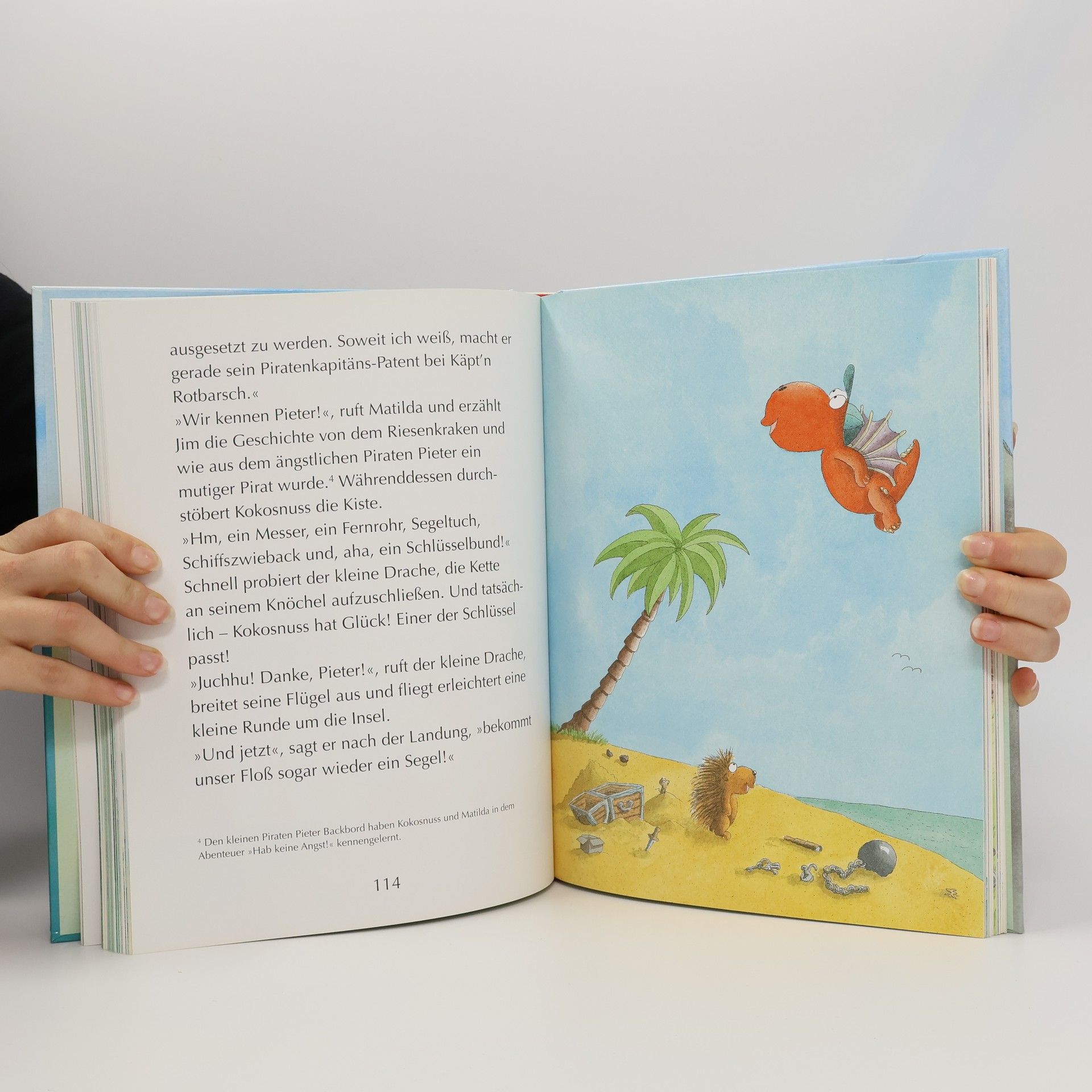 Der kleine Drache Kokosnuss, das Stachelschwein Matilda und der Fressdrache Oskar gehen in diesem großformatigen Sammelband auf drei aufregende Abenteuer-Reisen: Sie tauchen nach einem magischen Amulett, gehen an Bord eines Piratenschiffs und besuchen die Indianer. Enthalten sind die Kokosnuss-Bände „Hab keine Angst“, „Kokosnuss und die wilden Piraten“ und „Kokosnuss bei den Indianern“.