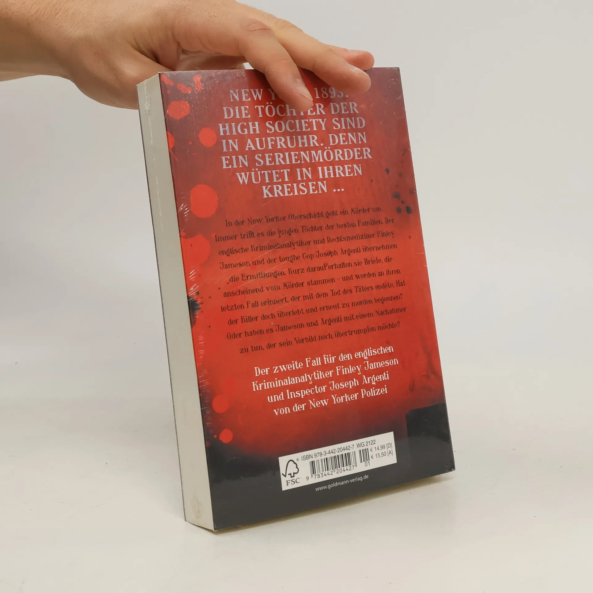 New York, 1891: Die Stadt, in der die Angst niemals ruht. New York, 1891: In der High Society der Stadt gibt es auffällig viele Todesfälle. Immer trifft es die jungen Töchter der besten Familien. Schon bald glaubt niemand mehr an eine natürliche Todesursache, und der aristokratische englische Kriminalanalytiker Finley Jameson übernimmt zusammen mit dem toughen Cop Joseph Argenti die Ermittlungen. Bei der Autopsie einer der Toten stellt Jameson fest, woran die jungen Mädchen gestorben sind: an einer vorsätzlich verursachten Embolie. Aber wo liegt das Motiv für die seltsamen Morde? Kurz darauf erhalten Jameson und Argenti Briefe, die anscheinend vom Mörder stammen – und sie werden auf unheimliche Weise an ihren letzten Fall erinnert, bei dem der Täter schwer verletzt entkommen konnte. Hat der Killer überlebt und erneut begonnen zu morden? Die Debütantinnenmorde tragen jedoch nicht seine Handschrift. Und Jameson und Argenti fragen sich, ob sie es mit einem Nachahmer zu tun haben, der die letzte Mordserie noch übertrumpfen möchte ...