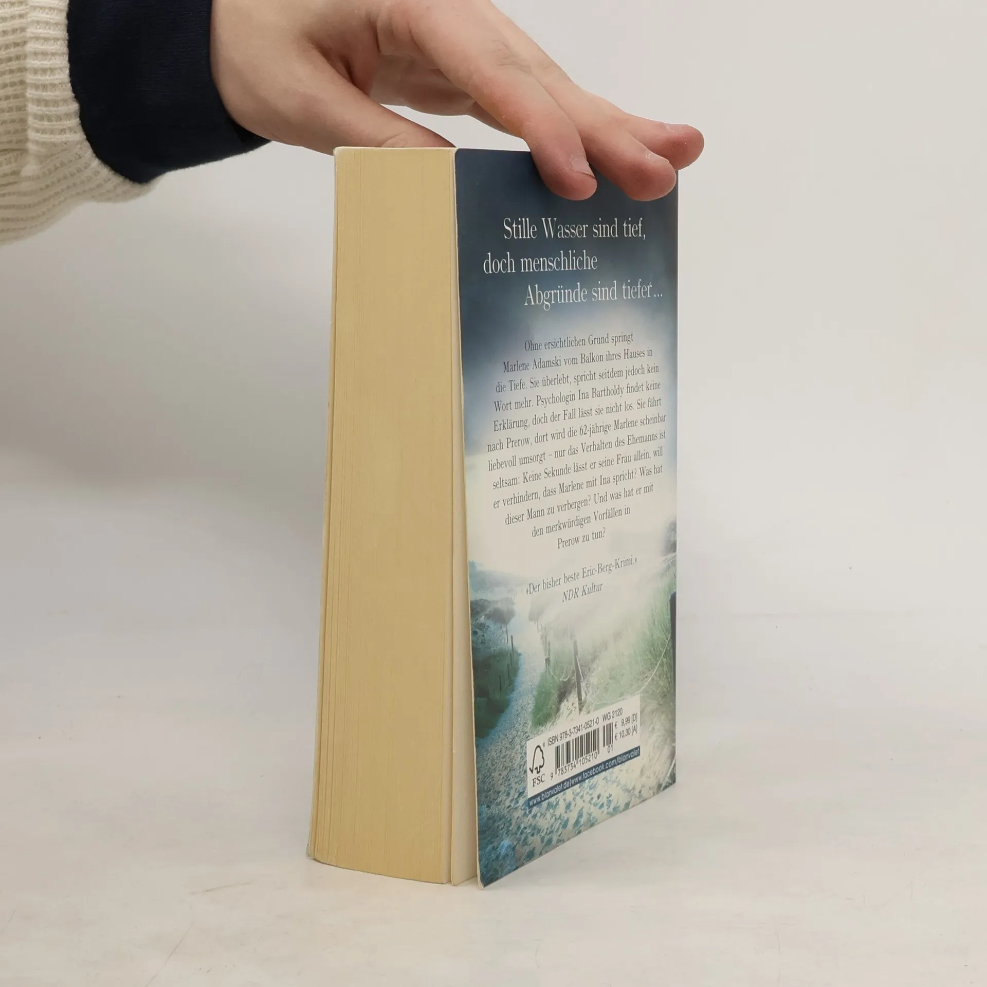 Düster, bildgewaltig, und hoch spannend: »Der bisher beste Eric-Berg-Krimi.« NDR Kultur Ohne ersichtlichen Grund springt Marlene Adamski vom Balkon ihres Hauses in die Tiefe. Sie überlebt, spricht seitdem jedoch kein Wort mehr. Psychologin Ina Bartholdy findet keine Erklärung, doch der Fall lässt sie nicht los. Sie fährt nach Prerow, dort wird die 62-jährige scheinbar liebevoll umsorgt – nur das Verhalten des Ehemanns ist seltsam: Keine Sekunde lässt er sie allein, will er verhindern, dass Marlene mit Ina spricht? Was hat dieser Mann zu verbergen? Und was hat er mit den merkwürdigen Vorfällen in Prerow zu tun?