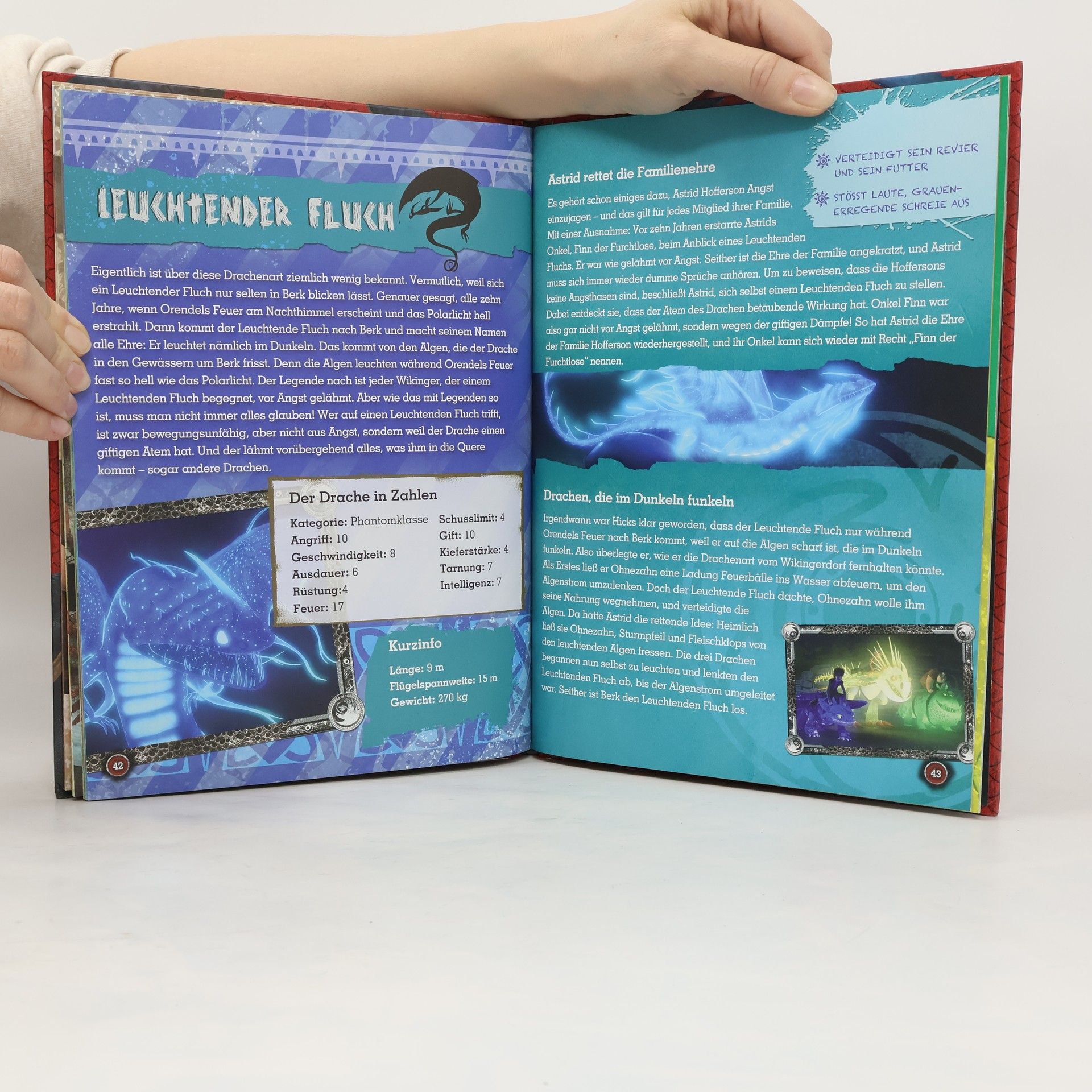 Wie heißen die Drachen von Berk? Welche Art ist am schnellsten? Welche Drachenklassen gibt es und was sind ihre besonderen Fähigkeiten? Hier erhältst du die Antworten auf all diese Fragen. Im großen Drachenführer werden alle bekannten Drachenarten aus dem Film- und Fernseherfolg Dragons vorgestellt und ausführlich beschrieben. Außerdem findest du Steckbriefe aller Drachen der Drachenakademie von Berk. Ob Ohnezahn, Sturmpfeil oder Fleischklops – hier sind sie alle versammelt! Ein Muss für jeden Dragons-Fan!