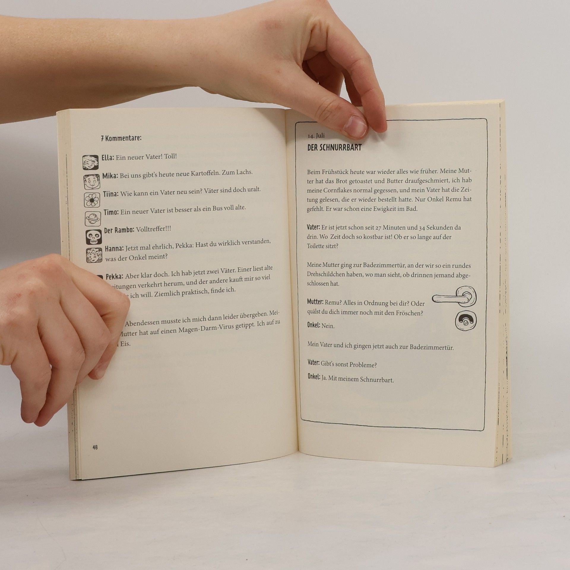 Die neue Serie Pekka erlebt die ulkigsten Abenteuer. Und klar: Die sind zum Schieflachen! Zum Beispiel, als sich Onkel Remu in Pekkas Schwimmlehrerin verknallt, aber viel zu schüchtern ist, sich mit ihr zu verabreden. Da erzählt Pekka seinem Onkel was von einer tollen Überraschung, zu der er ihn aber mit verbundenen Augen hinführen muss. Weil es sonst ja keine wäre. Die Überraschung ist das Rendezvous mit der Schwimmlehrerin, und es ginge auch alles gut, würde Pekka den Onkel nicht kurz an der Bushaltestelle abstellen, um sich am Kiosk ein Eis zu kaufen. Und käme nicht ausgerechnet da ein Pfadfinder, dem noch die gute Tat des Tages fehlt. Der hilft dem armen Onkel mit den verbundenen Augen nämlich freundlich in den Bus. Natürlich in den falschen. Dumm gelaufen! Aber keine Angst: Das ist noch nicht das Ende … Zu diesem Buch finden Sie Quizfragen auf antolin. de