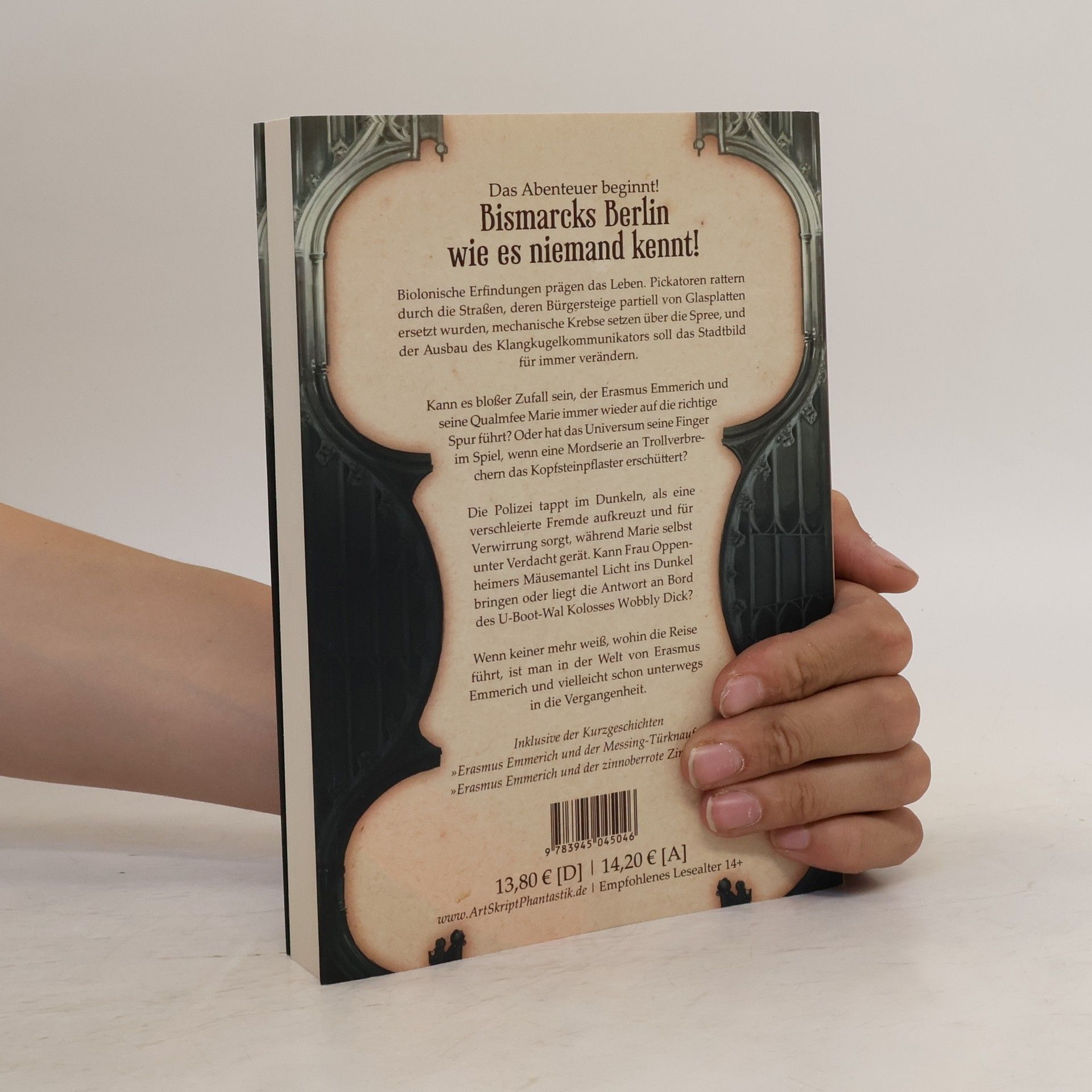 Das Abenteuer beginnt! Bismarcks Berlin wie es niemand kennt. Biolonische Erfindungen prägen das Leben. Pickatoren rattern durch die Straßen, deren Bürgersteige partiell von Glasplatten ersetzt wurden, mechanische Krebse setzen über die Spree, und der Ausbau des Klangkugelkommunikators soll das Stadtbild für immer verändern. Kann es bloßer Zufall sein, der Erasmus Emmerich und seine Qualmfee immer wieder auf die richtige Spur führt? Oder hat das Universum seine Finger im Spiel, wenn eine Mordserie an Trollverbrechern das Kopfsteinpflaster erschüttert? Die Polizei tappt im Dunkeln, als eine verschleierte Fremde aufkreuzt und für Verwirrung sorgt, während Marie selbst unter Verdacht gerät. Kann Frau Oppenheimers Mäusemantel Licht ins Dunkel bringen oder liegt die Antwort an Bord des U-Boot-Wal Kolosses Wobbly Dick? Wenn keiner mehr weiß, wohin die Reise führt, ist man in der Welt von Erasmus Emmerich und vielleicht schon unterwegs in die Vergangenheit. Dieses Buch ist als edle Klappbroschur gedruckt