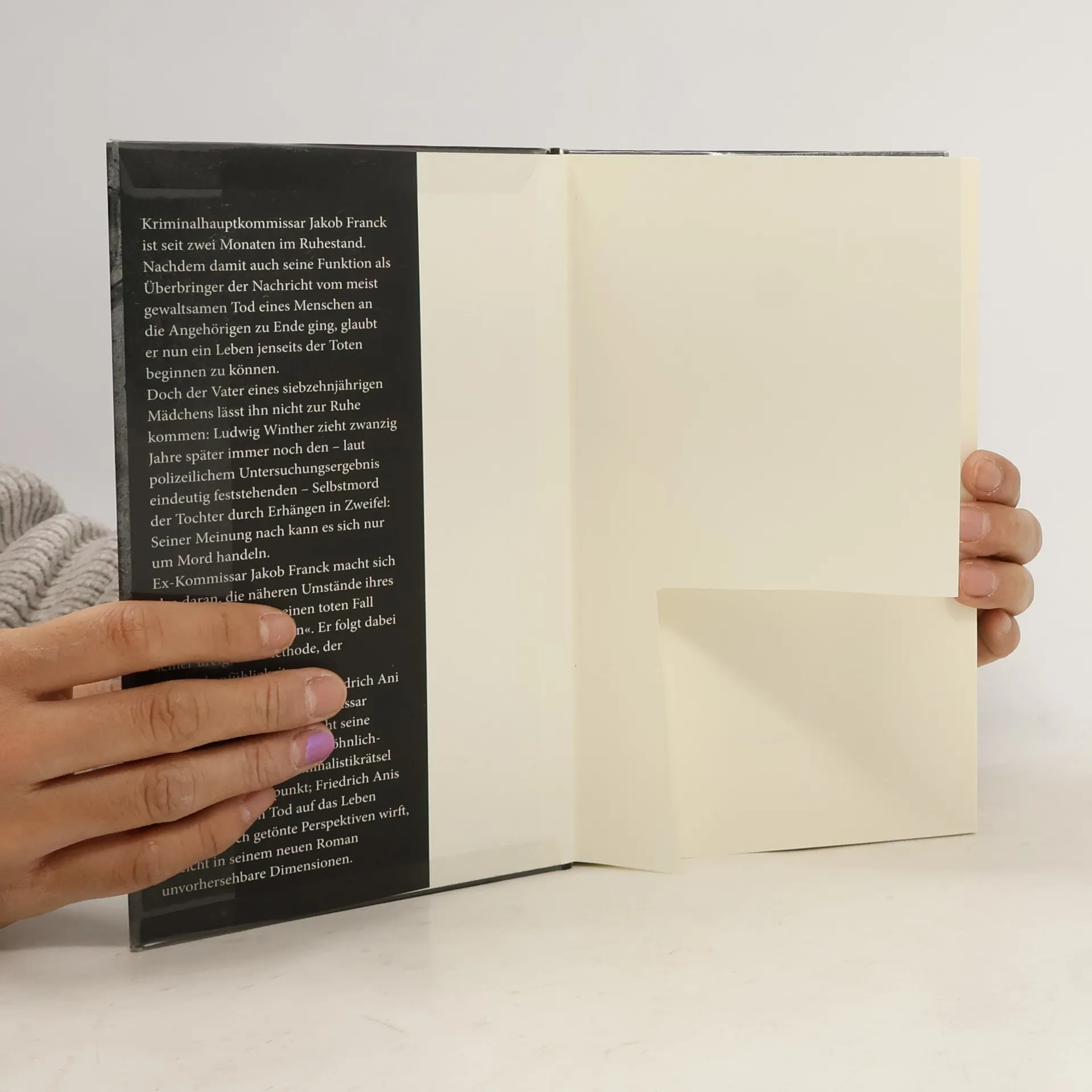 Kriminalhauptkommissar Jakob Franck ist seit zwei Monaten im Ruhestand und glaubt nun, ein Leben jenseits der Toten beginnen zu können. Vor zwanzig Jahren hatte er sieben Stunden, ohne ein Wort zu sagen, der Mutter einer toten Siebzehnjährigen beigestanden. Jetzt wird der Kommissar von dieser Konstellation eingeholt: Ludwig Winther tritt mit ihm in Kontakt; er ist der Vater des jungen Mädchens und Ehemann jener Frau, der Franck so viel Aufmerksamkeit widmete. Zwanzig Jahre sind vergangen, und der Vater glaubt noch immer nicht an den – laut polizeilichem Untersuchungsergebnis eindeutig feststehenden – Selbstmord der Tochter durch Erhängen: Seiner Meinung nach kann es sich nur um Mord handeln. Ex-Kommissar Jakob Franck macht sich also daran, die näheren Umstände ihres Todes aufzuklären, »einen toten Fall zum Leben zu erwecken«. Jakob Franck folgt dabei seiner ureigenen Methode, der »Gedankenfühligkeit«:.Diese ist unnachahmlich und unübertroffen bei der Lösung der kompliziertesten und überraschendsten Fälle. Mit diesem Roman startet eine Reihe um Ex-Kommissar Jakob Franck. Friedrich Ani und seine Kunst der Konstruktion gewöhnlich-außergewöhnlicher Kriminalistikrätsel; Friedrich Ani und seine Sprache, die vom Tod auf das Leben melancholisch gelöste Perspektiven wirft - Friedrich Ani und seine Kunst erreichen in seinem neuen Roman unvorhersehbare Dimensionen.