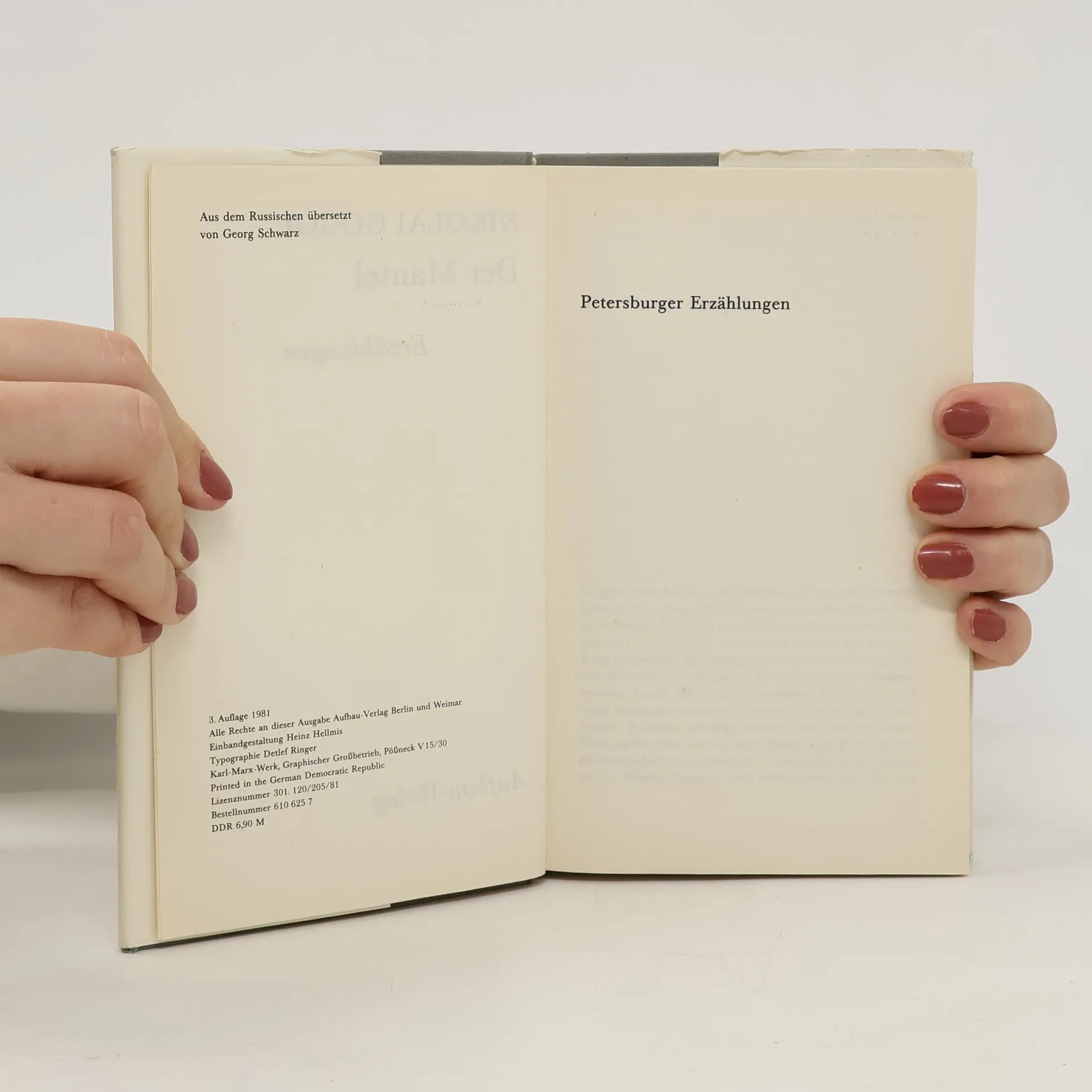 Die beiden in Petersburg spielenden grotesk-phantastischen Novellen »Der Mantel« und »Die Nase« gehören zum Besten, was Gogol geschrieben hat. Weitere »Petersburger Novellen« und andere ausgewählte Prosa des Autors in: Nikolaj Gogol, »Erzählungen« (ISBN 978-3-15-020248-7)