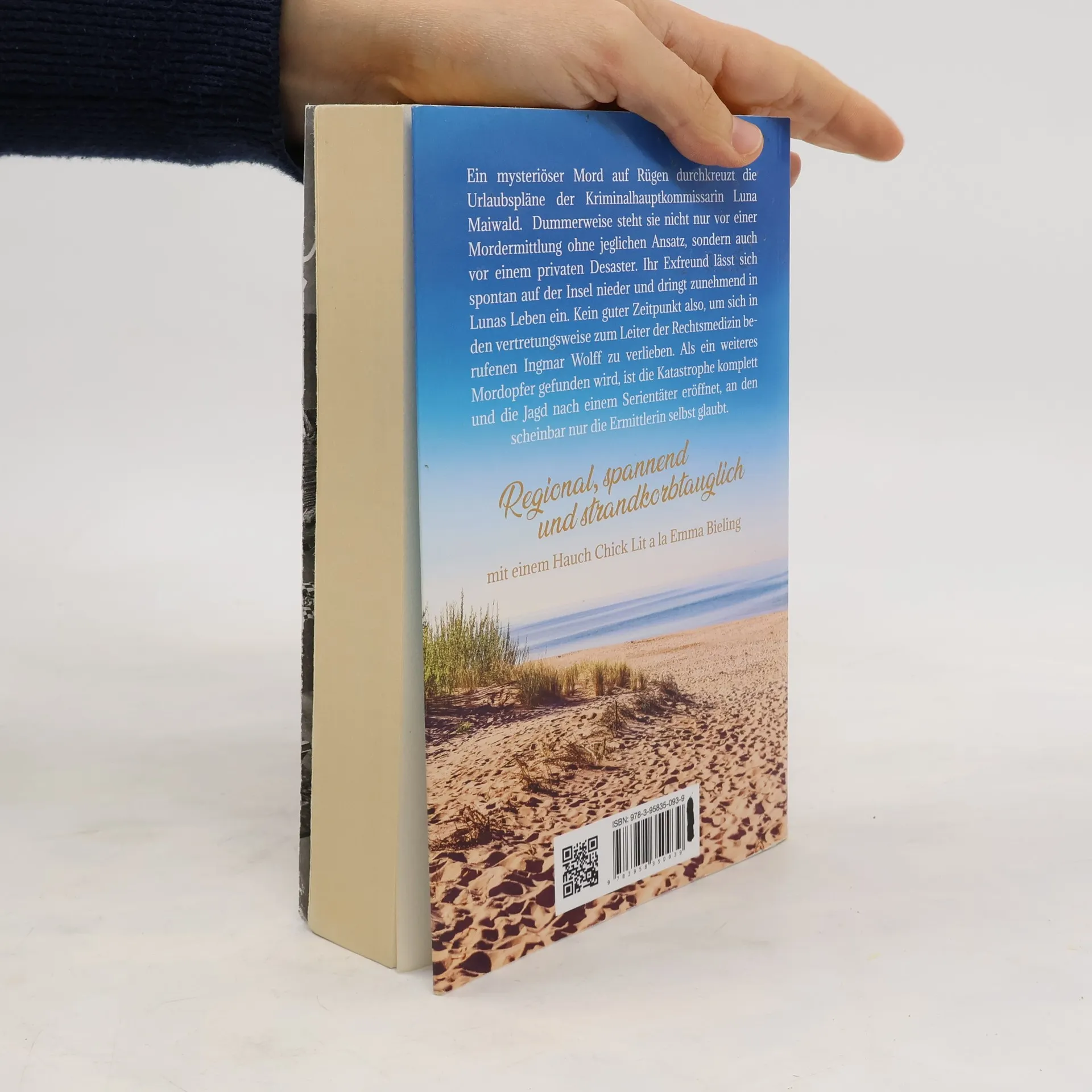 Ein mysteriöser Mord durchkreuzt die Urlaubspläne der Kriminalhauptkommissarin Luna Maiwald. Zurück auf Rügen steht sie nicht nur vor einer Mordermittlung ohne jeglichen Ansatz, sondern auch vor einem privaten Desaster. Ihr Exfreund und Vater der gemeinsamen Tochter Marcia lässt sich spontan auf der Insel nieder und dringt zunehmend in Lunas Leben ein. Kein guter Zeitpunkt also, um sich in den vertretungsweise zum Leiter der Rechtsmedizin berufenen Ingmar Wolff zu verlieben, der mit Luna Hand in Hand an der Aufklärung des Falles arbeitet. Als ein weiteres Mordopfer gefunden wird, ist die Katastrophe komplett und die Jagd nach einem Serientäter eröffnet, an den scheinbar nur die Ermittlerin selbst glaubt. Regional, spannend und strandkorbtauglich, mit einem Hauch Chick Lit a la Emma Bieling. Mit Sonne, Strand und Tod legt Emma Bieling nun einen Titel vor, in dem sie jene beiden Elemente, die so deutlich zusammengehören, dass es schon fast wieder übersehen werden kann, an die Plätze fügt, an die sie gehören: einander scheinbar widersprechende Pole, wohlig miteinander kuschelnd.