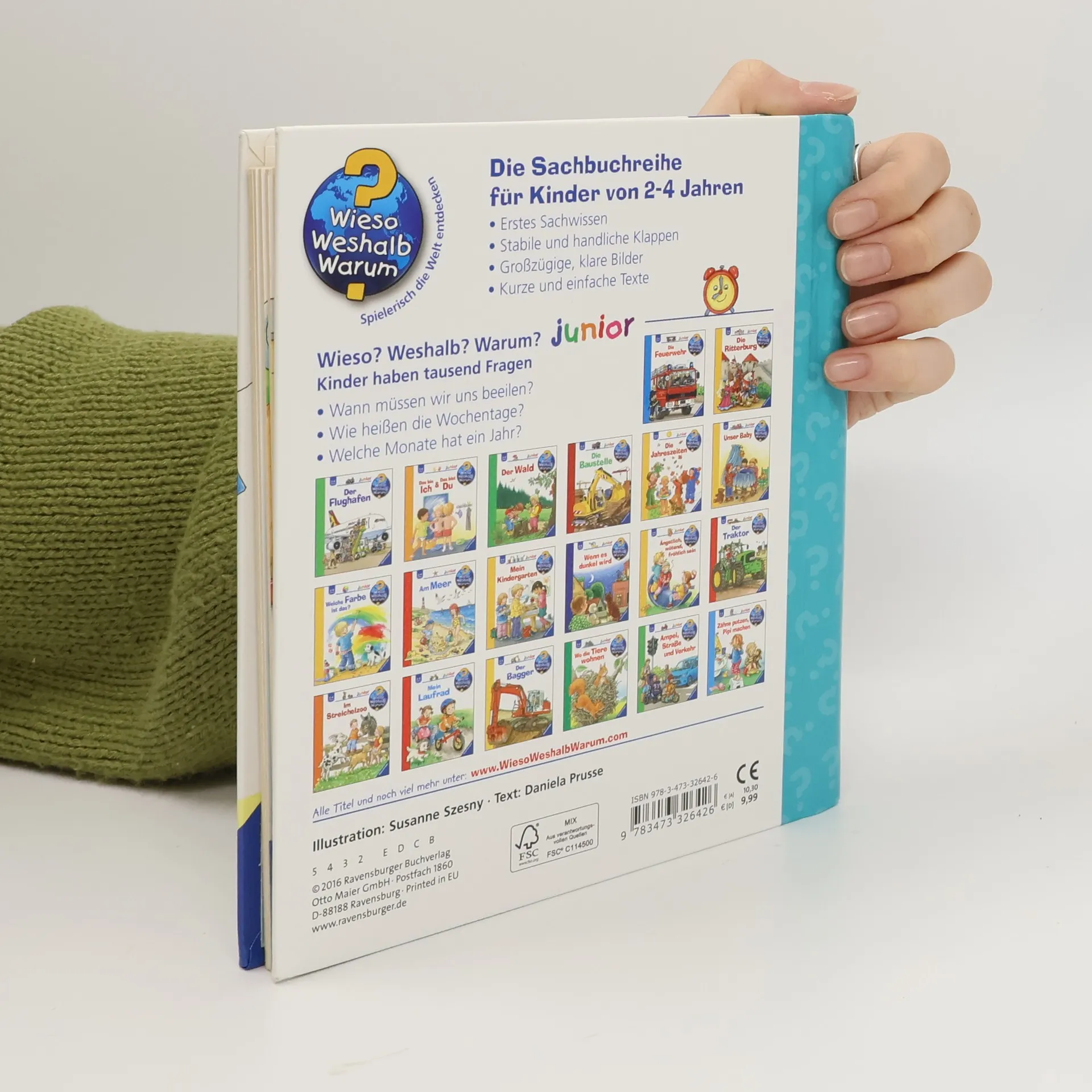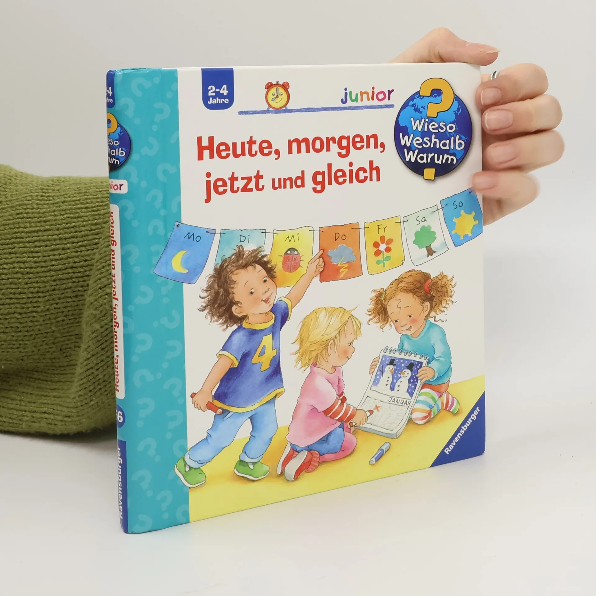 Gestern, morgen, in einer Stunde, nächste Woche - unsere Zeiteinteilung ist für kleine Kinder nur schwer zu begreifen. Wann ist „gleich“? Was geht schnell und was dauert lange? Welche Wochentage und Monate gibt es? Was ist morgens, mittags, abends? Mithilfe von anschaulichen Alltagssituationen macht dieses Buch auch abstrakte Zeitbegriffe schon für Kinder ab 2 Jahren fassbar und hilft ihnen, Zeitpunkte und -räume besser einzuschätzen. Wieso? Weshalb? Warum? junior Die Sachbuchreihe für Kinder von 2-4 Jahren Jeden Tag entdecken Kinder etwas Neues – und haben viele Fragen. Wann kommt die Feuerwehr? Was machen die Tiere im Winter? Warum muss ich Zähne putzen? Die beliebte Sachbuchreihe Wieso? Weshalb? Warum? junior beantwortet die Fragen der Kinder auf Augenhöhe. Sie beleuchtet unterschiedlichste Themen aus ihrer Alltags- und Interessenswelt altersgerecht und mit viel Liebe zum Detail. Die Reihe ist speziell auf kleine Hände und die Bedürfnisse der Kleinsten angepasst. Klare und liebevolle Bilder, kurze Sachtexte sowie handliche Klappen, die Bewegungen veranschaulichen und überraschende und lustige Einblicke gewähren, ermöglichen Kindern, sich ihre Themen selbst zu erschließen. Der Spaß am eigenhändigen Entdecken, die liebevolle Umsetzung und die hochwertige Ausstattung garantieren langanhaltende Freude an jedem Buch.