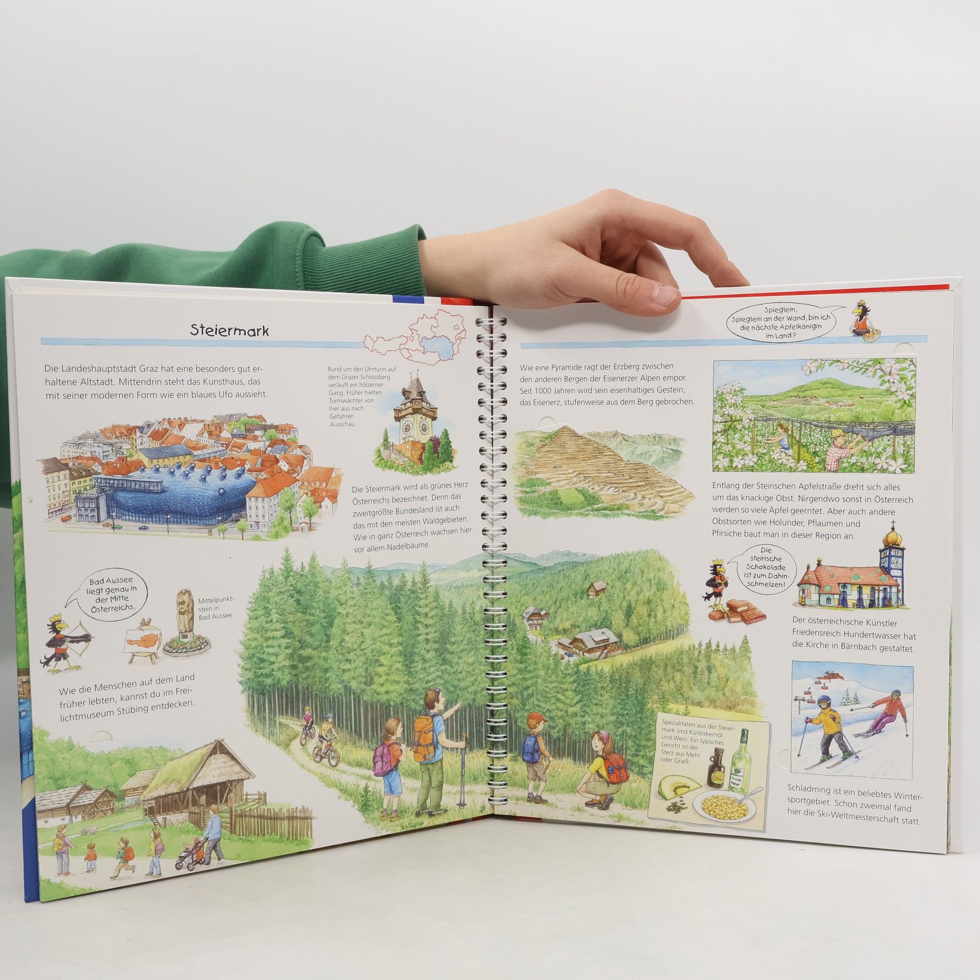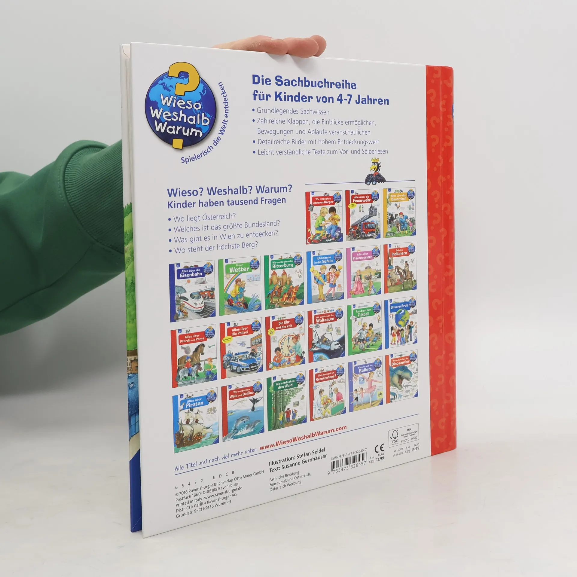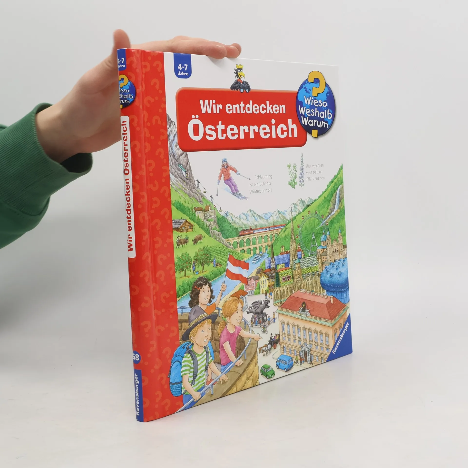 Riesenrad fahren oder den Schönbrunner Zoo in Wien besuchen, wandern in den Wäldern der Steiermark oder Skifahren in Vorarlberg – in Österreich gibt es so viel zu erleben! Mit diesem Sachbilderbuch reisen Kinder durch die Bundesländer der Alpenrepublik und entdecken landschaftliche, kulturelle und kulinarische Highlights. Detailreich illustrierte Klappen lassen noch tiefer blicken: So sind die Kinder etwa live auf dem Wiener Opernball dabei und steigen ins Schaubergwerk Hallstatt hinunter. Wieso? Weshalb? Warum? Die Sachbuchreihe für Kinder von 4–7 Jahren Jeden Tag entdecken Kinder etwas Neues – da kommen viele Fragen auf. Warum sind die Dinosaurier ausgestorben? Wo ist die Sonne in der Nacht? Wozu brauchen wir das Blut? Die beliebte Sachbuchreihe Wieso? Weshalb? Warum? gibt Kindern Antworten auf Augenhöhe. Dabei werden die unterschiedlichsten Themen aus der Alltags- und Interessenswelt der Kinder altersgerecht und mit viel Liebe zum Detail unter die Lupe genommen. Detailreiche Bilder, verständliche Sachtexte und überraschende Klappen, die Bewegungen oder Abläufe veranschaulichen und hinter die Dinge blicken lassen, ermöglichen Kindern, sich ihre Themen selbst zu erschließen. Der Spaß am eigenhändigen Entdecken, die liebevolle Umsetzung und die qualitativ hochwertige Ausstattung garantieren langanhaltende Freude an jedem einzelnen Buch.