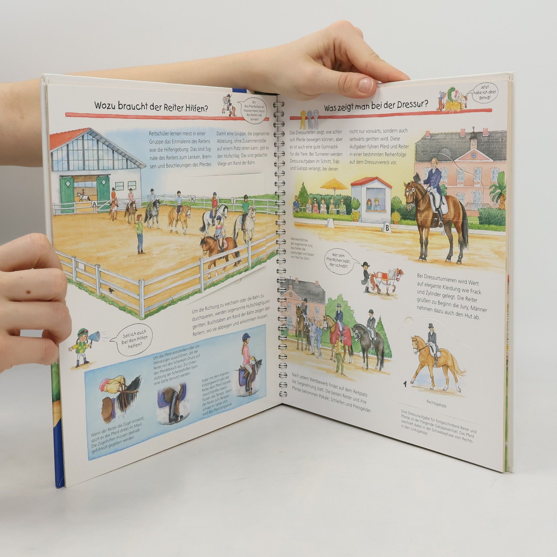 Viele Kinder träumen davon, reiten zu lernen. Für sie ist dieser Band ebenso ideal wie für Kinder, die bereits Erfahrungen im Reiten haben. Das Voltigieren stellt oft den Einstieg in den Pferdesport dar und wird im Buch besonders beleuchtet. Daneben werden unter anderem Dressur- und Springreiten, Westernreiten und Polo vorgestellt. Und mit den herausnehmbaren Spielfiguren können Kinder selbst die Hufschlagfiguren üben.
