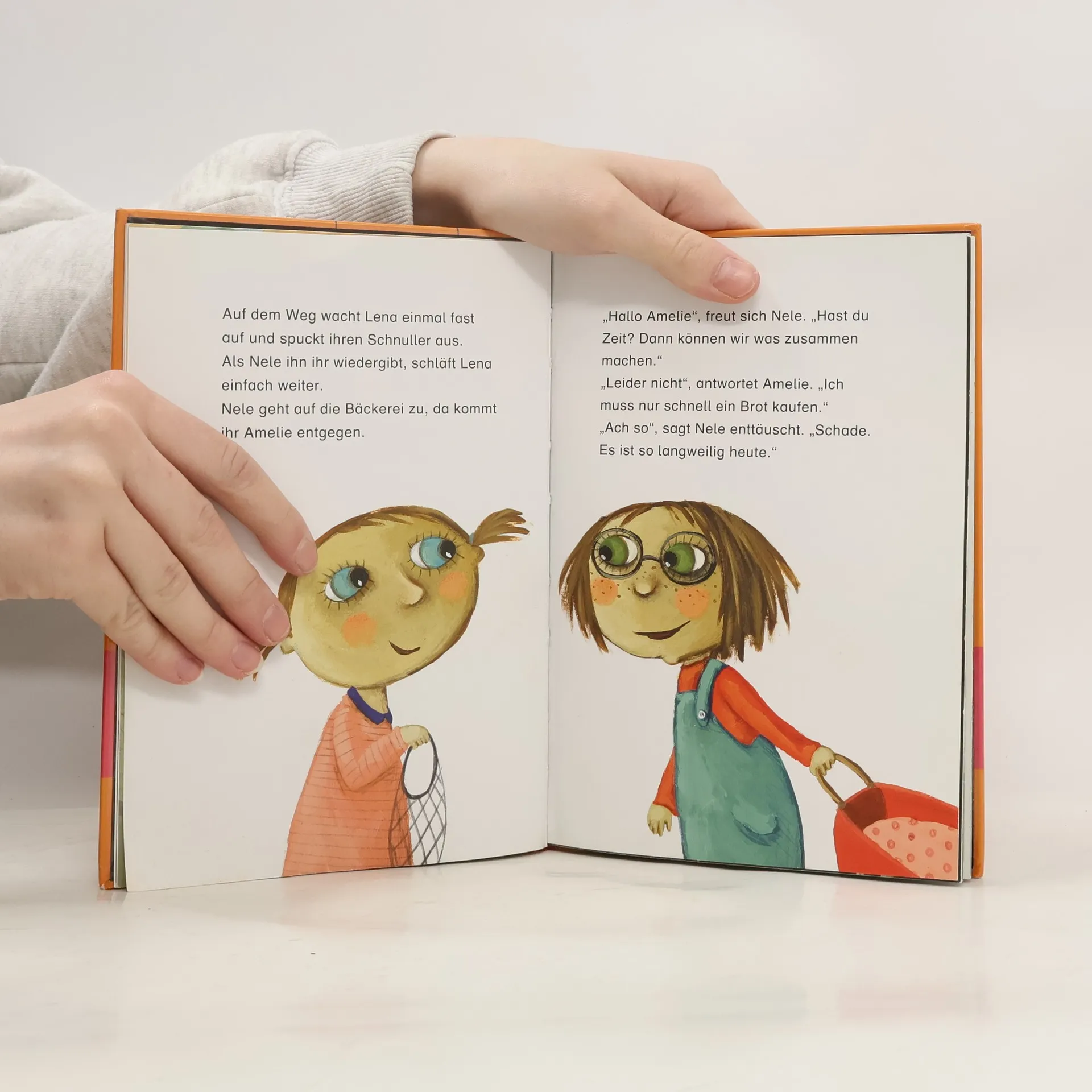 Nele langweilt sich! Aber zum Malen hat sie keine Lust und zum Lesen erst recht nicht. Ihre Freundin Amelie hat keine Zeit und ihre kleine Schwester Lena schläft. Jetzt soll sie auch noch ihrer Mutter beim Aufräumen helfen. Da geht sie lieber mit Lena im Kinderwagen zur Bäckerei und kauft Kuchen. Plötzlich quietschen Autoreifen, zwei Pferde sind außer Kontrolle geraten. Jetzt ist richtig was los. So viel, dass Nele sogar ihre kleine Schwester vergisst. Ausstattung: durchg. 4-farbig