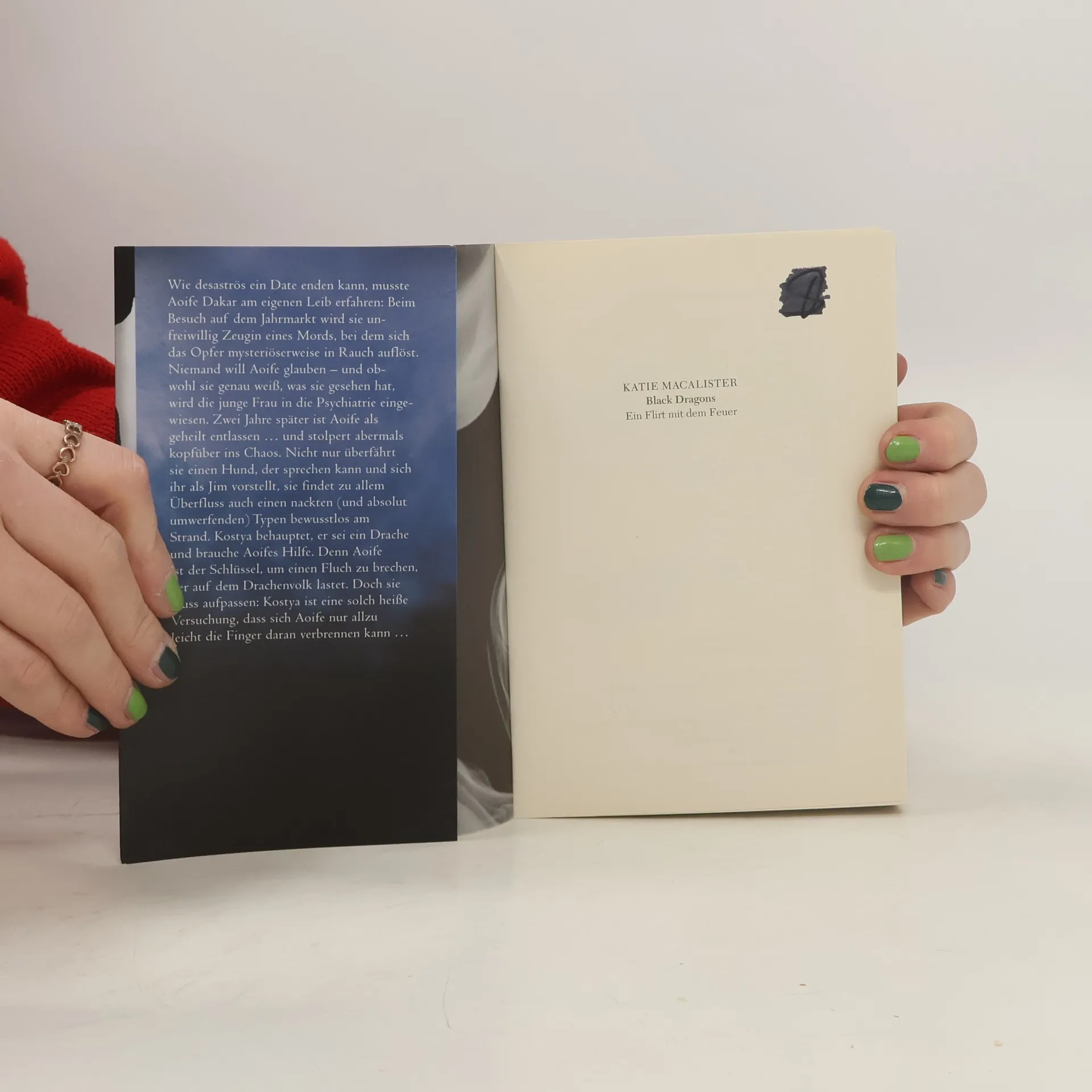 Aoife Dakar wird zufällig Zeugin eines übernatürlichen Mordes, doch niemand glaubt ihren Erzählungen. Als sie an den Tatort zurückkehrt, um nach Beweisen zu suchen, begegnet sie einem vorlauten Dämonenhund und einem herrlich nackten Mann, der sich nicht nur in einen Drachen verwandeln, sondern auch göttlich küssen kann. Aoife findet sich plötzlich in einer fantastischen Welt wieder, die gleichzeitig so aufregend wie furchteinflößend ist. Und sie lernt, dass man sich beim Spiel mit Drachen auch ordentlich die Finger verbrennen kann.