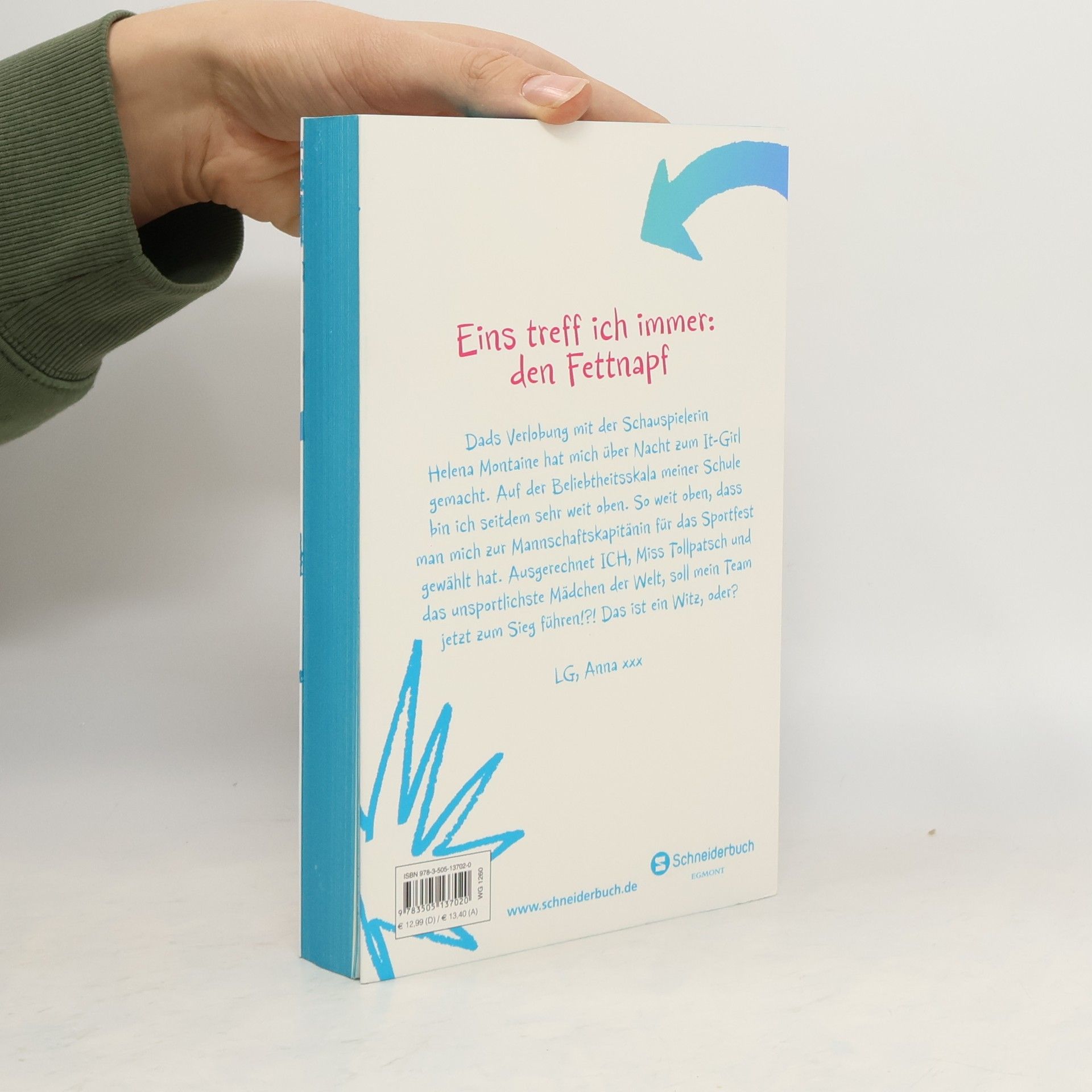 Meine (neuen) Lebensziele: 1. Einen It-Girl-würdigen Start nach den Ferien an meiner Schule hinlegen (möglichst ohne peinliche Aussetzer). 2. Durch eigene Talente Berühmtheit erlangen (und nicht nur, weil mein Vater sich mit der bekanntesten Schauspielerin ever verlobt hat). 3. Eine Begabung finden, die den süßesten Jungen der Schule (Connor) ebenso beeindruckt wie das Zeichentalent der Neuen (die sich ihm so was von schamlos an den Hals wirft!). 4. Das bevorstehende Sportfest dazu nutzen, die Punkte 1, 2 und 3 zu erreichen. LG, Anna xxx