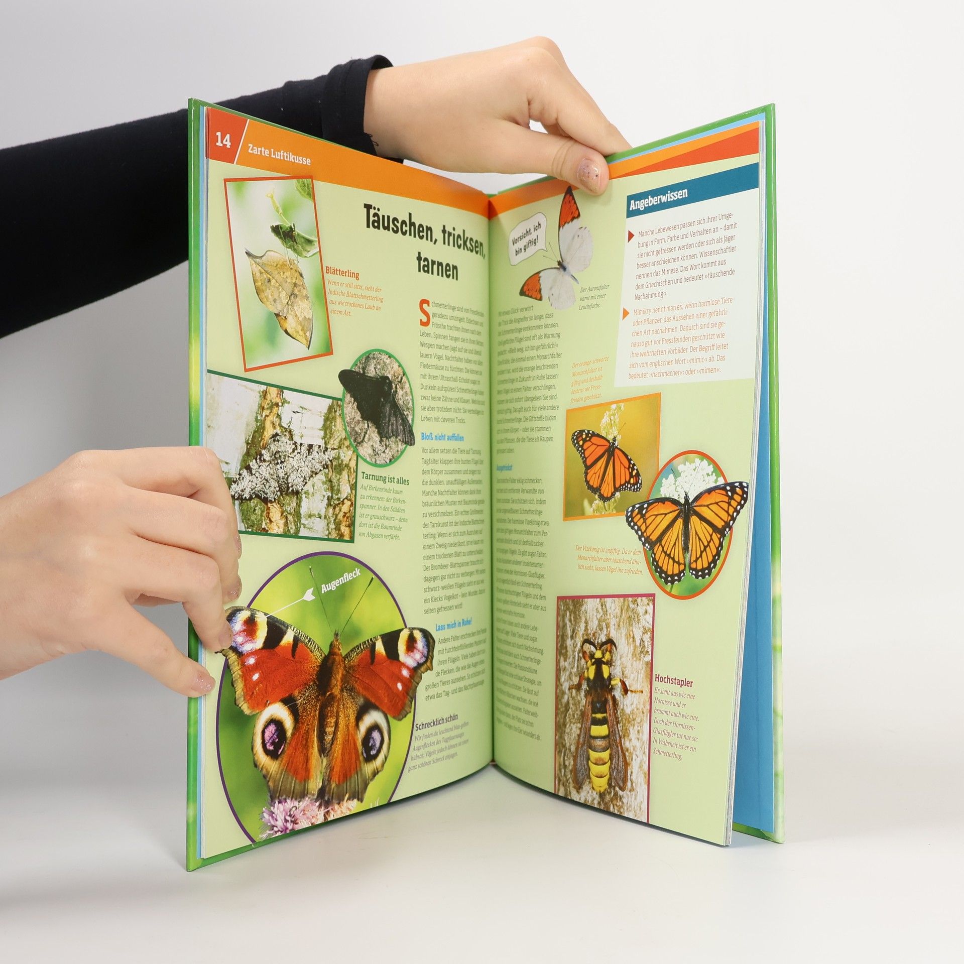 Schon dem Tyrannosaurus rex flatterten zarte Schmetterlinge um die Nase. Fossilienfunde zeigen, dass die ersten Nachtfalter bereits vor über 140 Millionen Jahren existierten. Die Tagfalter kamen erst später hinzu. Die Vielfalt der bunt geflügelten Wesen fasziniert uns bis heute immer wieder und gibt selbst Schmetterlingsforschern manches Rätsel auf. Wie halten es Schmetterlinge in Wüsten oder in der Arktis aus? Sie sind wahre Überlebenskünster und Verwandlungskünstler obendrein. Tagpfauenaugen, Schwalbenschwänze und Kohlweißlinge - WAS IST WAS begibt sich mit Netz, Becher und Lupe in die Natur.