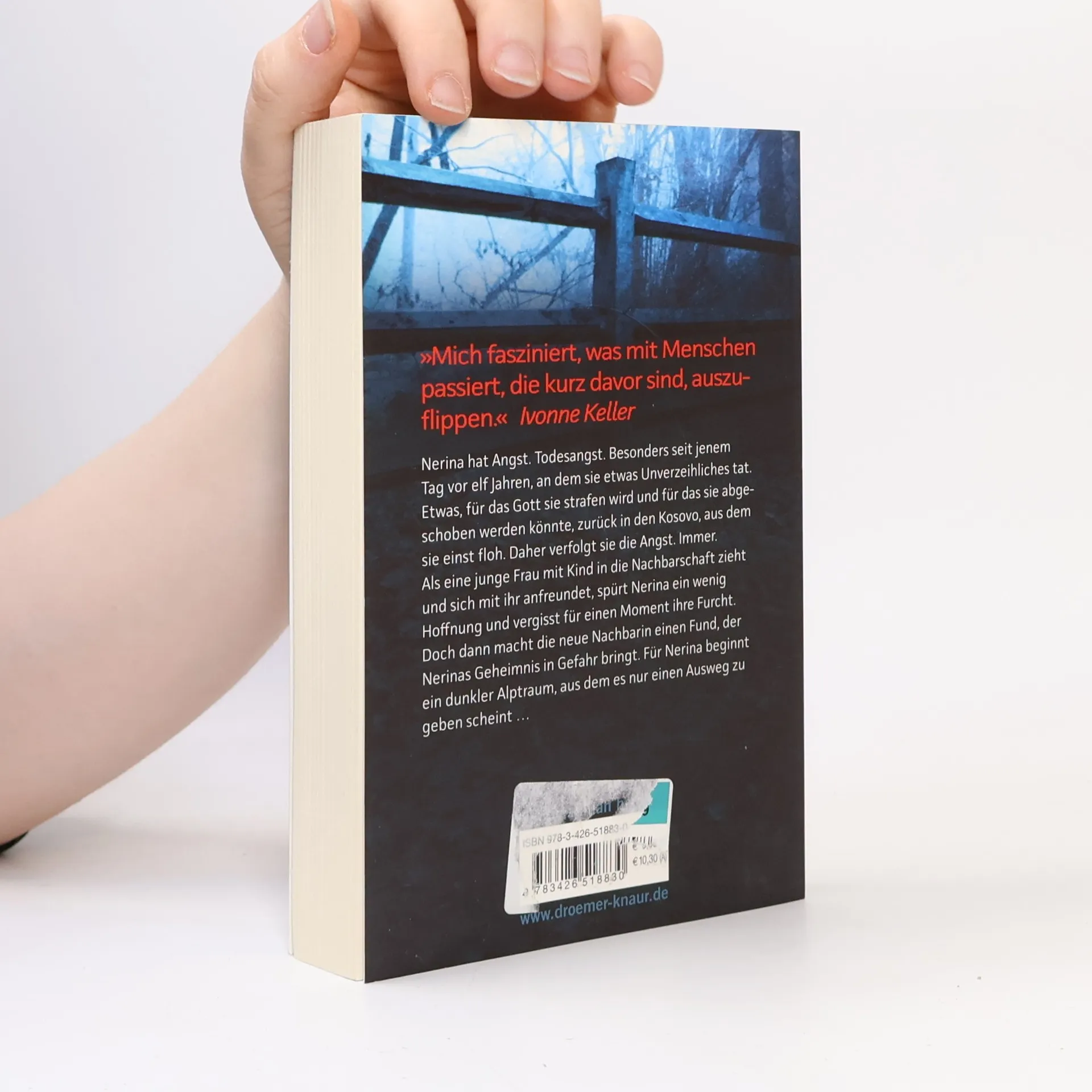 Nerina hat Angst. Todesangst. Besonders seit jenem Tag vor elf Jahren, an dem sie etwas Unverzeihliches tat. Die Angst vor der Strafe Gottes und vor der Abschiebung zurück in den Kosovo, aus dem sie einst floh, verfolgt sie. Immer. Als eine junge Frau mit Kind in die Nachbarschaft zieht und sich mit ihr anfreundet, sieht Nerina einen Hoffnungsschimmer, vergisst für einen Moment ihre Angst. Doch dann macht die neue Nachbarin einen Fund, der Nerinas Geheimnis in Gefahr bringt. Für Nerina beginnt ein Alptraum, aus dem es nur einen Ausweg zu geben scheint …