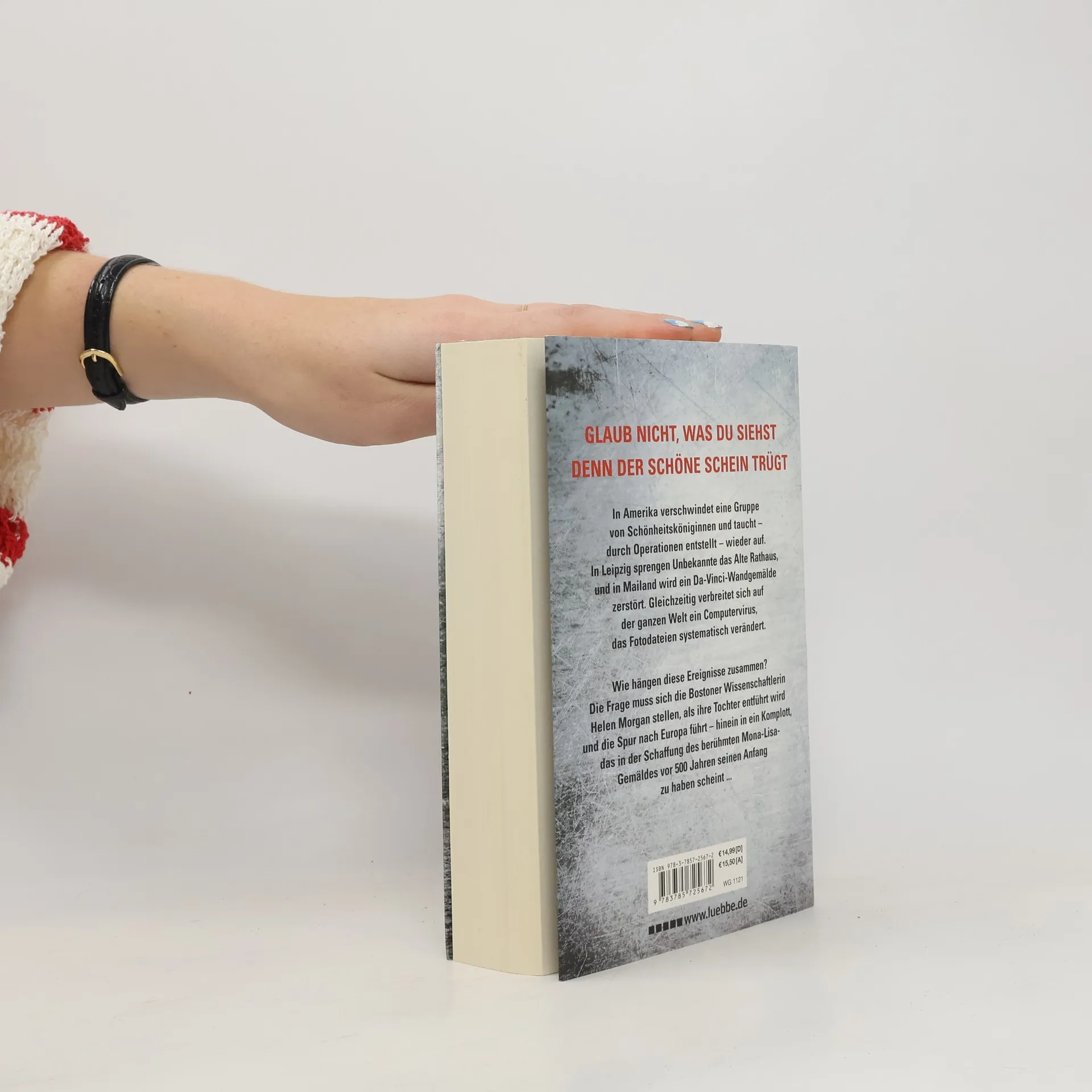 Glaub nicht, was du siehst Denn der schöne Schein trügt In Amerika verschwindet eine Gruppe von Schönheitsköniginnen und taucht durch Operationen entstellt wieder auf. In Leipzig sprengen Unbekannte das Alte Rathaus, und in Mailand wird ein Da-Vinci-Wandgemälde zerstört. Gleichzeitig verbreitet sich auf der ganzen Welt ein Computervirus, das Fotodateien systematisch verändert. Wie hängen diese Ereignisse zusammen? Die Frage muss sich die Bostoner Wissenschaftlerin Helen Morgan stellen, als ihre Tochter entführt wird und die Spur nach Europa führt – hinein in ein Komplott, das in der Schaffung des berühmten Mona-Lisa-Gemäldes vor 500 Jahren seinen Anfang zu haben scheint ... Ein hochspannender Thriller um den „Bauplan Gottes“ und die teuflische Seite der Schönheit - Für alle Fans großer Verschwörungs- und Geheimnisthriller