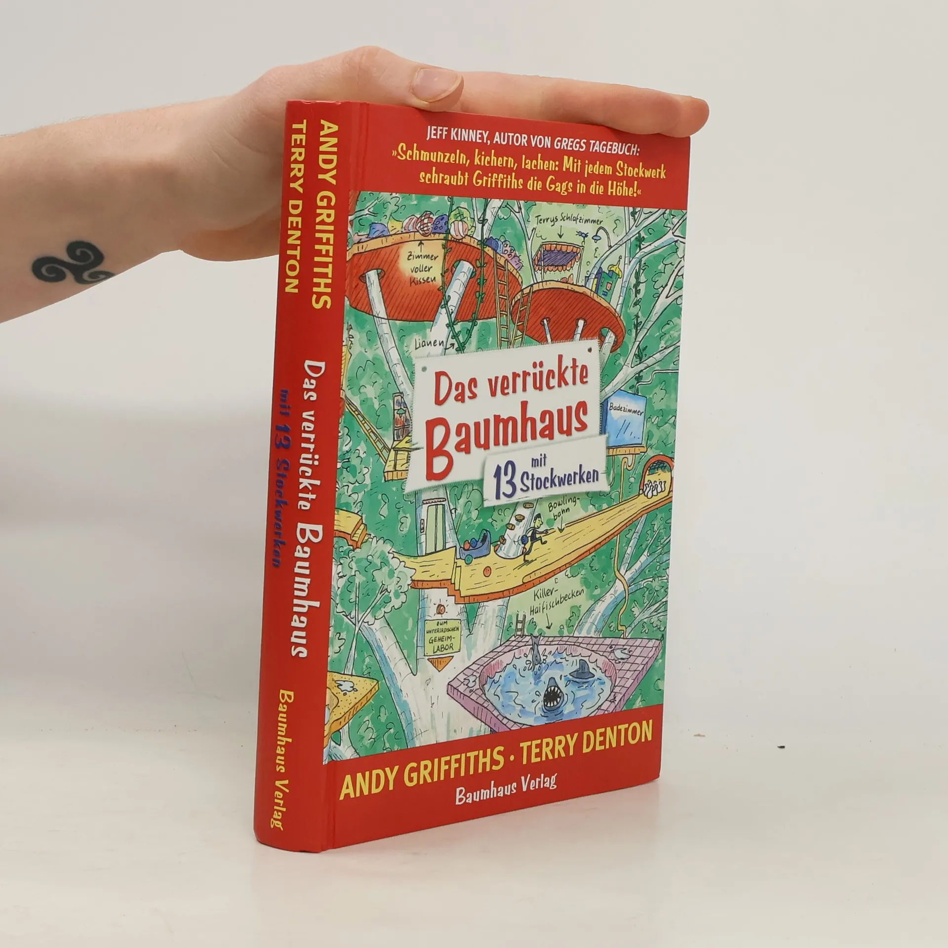 Vom Bestsellerautor von Gregs Tagebuch empfohlen! Mal ehrlich: Wer würde nicht gern in einem Baumhaus wohnen? Und noch dazu in einem Baumhaus mit 13 Stockwerken, einer Bowlingbahn, einem Swimmingpool, einem unterirdischen Geheimlabor, einem Spielezimmer und einer vollautomatischen Marshmallow-Wurfmaschine? In genau so einem Baumhaus leben die Freunde Andy und Terry und stolpern von einem schrägen Abenteuer ins nächste. So bekommen sie es nicht nur mit übergroßen Bananen und Riesengorillas zu tun, sondern auch mit einer fliegenden Katze und einem fiesen Seemonster. Denn Vorsicht, in einem 13-stöckigen Baumhaus kann so ziemlich alles passieren ... Vom Bestsellerautor Jeff Kinney, dem Vater von Greg, empfohlen: „Schmunzeln, kichern, lachen. Mit jedem Stockwerk schraubt Griffiths die Gags in die Höhe!“ Alle Fans von Gregs Tagebuch werden sich auch bei diesem Buch die Bäuche halten vor Lachen!