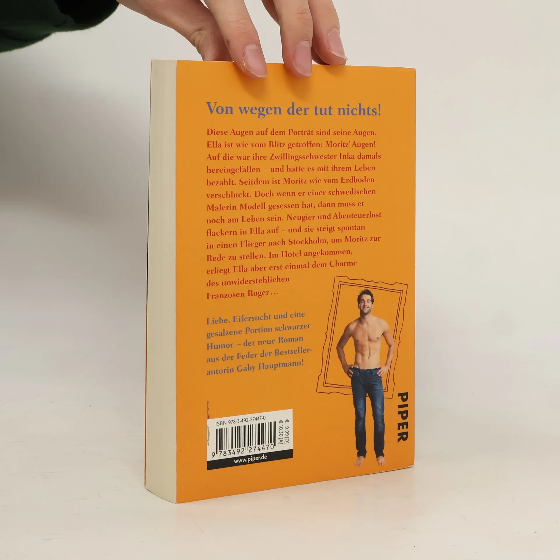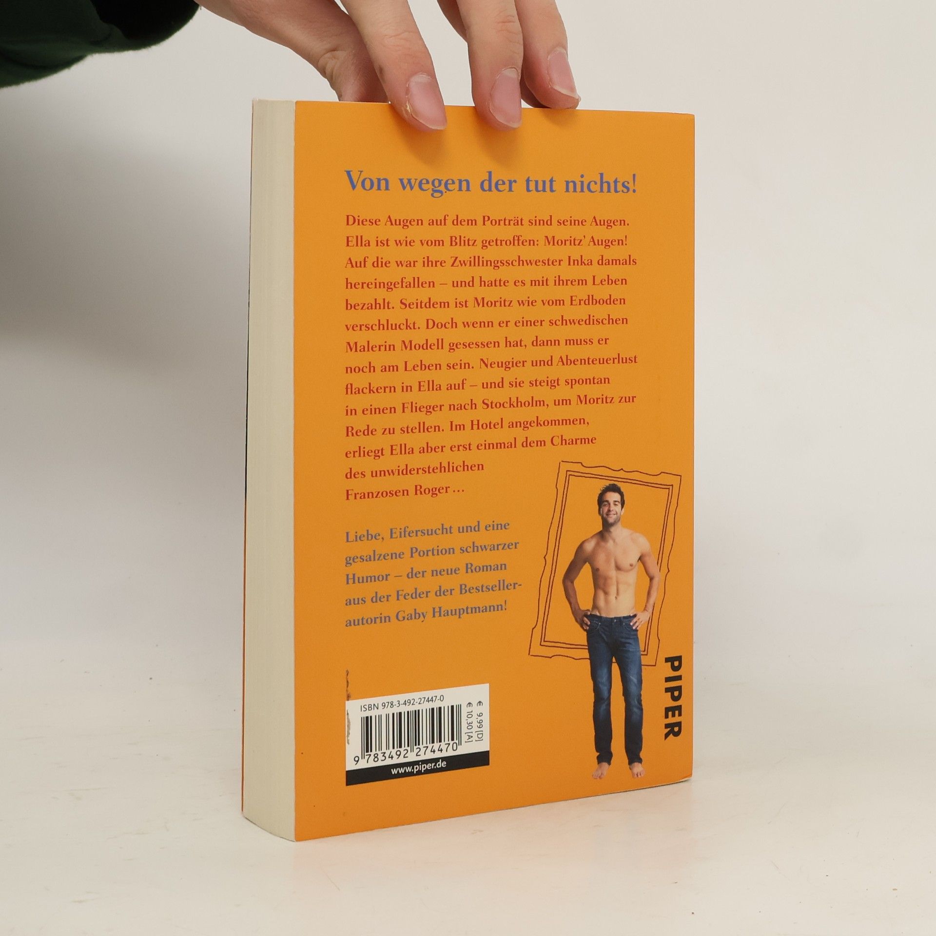 Diese Augen auf dem Porträt sind seine Augen. Ella ist wie vom Blitz getroffen: Moritz’ Augen! Auf die war ihre Zwillingsschwester Inka damals hereingefallen – und hatte es mit ihrem Leben bezahlt. Seitdem ist Moritz wie vom Erdboden verschluckt. Doch wenn er einer schwedischen Malerin Modell gesessen hat, dann muss er noch am Leben sein. Neugier und Abenteuerlust flackern in Ella auf – und sie steigt spontan in einen Flieger nach Stockholm, um Moritz zur Rede zu stellen. Im Hotel angekommen, erliegt Ella aber erst einmal dem Charme des unwiderstehlichen Franzosen Roger… Liebe, Eifersucht und eine gesalzene Portion schwarzer Humor – der neue Roman aus der Feder der Bestsellerautorin Gaby Hauptmann!