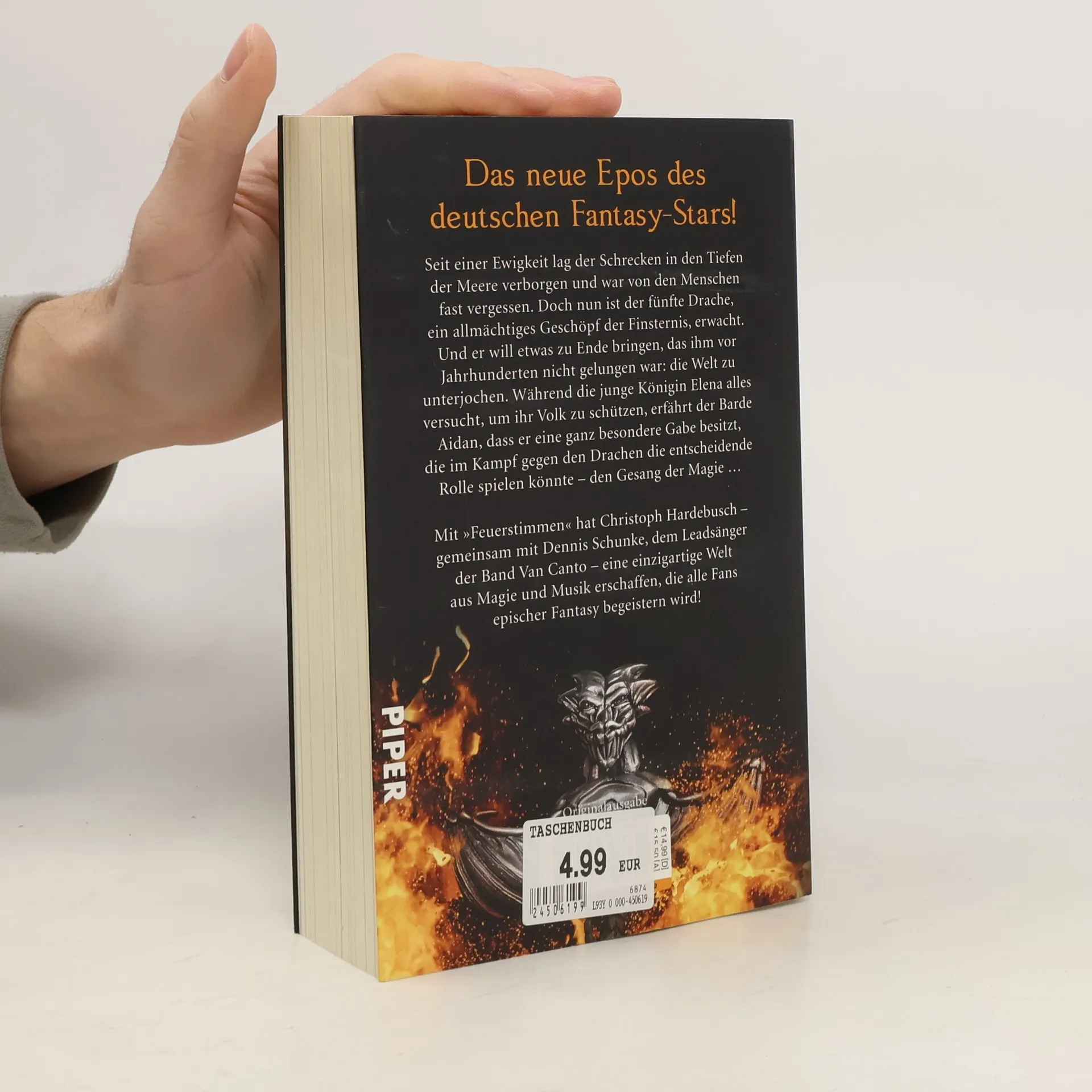Mit dem preisgekrönten Roman »Die Trolle« und der Reihe um die »Sturmwelten« schrieb sich Christoph Hardebusch an die Spitze der deutschsprachigen Fantasy. Mit »Feuerstimmen« führt er alle Fans in eine neue Welt: Seit einer Ewigkeit lag der Schrecken in den Tiefen der Meere verborgen und war von den Menschen fast vergessen. Doch nun ist der fünfte Drache, ein allmächtiges Geschöpf der Finsternis, erwacht. Und er will etwas zu Ende bringen, das ihm vor Jahrhunderten nicht gelungen war: die Welt zu unterjochen. Im Verborgenen wächst die Macht des Drachen, und die Menschen erkennen erst spät, dass sie mehr und mehr zum Spielball der Dunkelheit werden. Während die junge Königin Elena alles versucht, um ihr Volk zu schützen, erfährt der Barde Aidan, dass er eine ganz besondere Gabe besitzt, die im Kampf gegen den Drachen die entscheidende Rolle spielen könnte - den Gesang der Magie ...