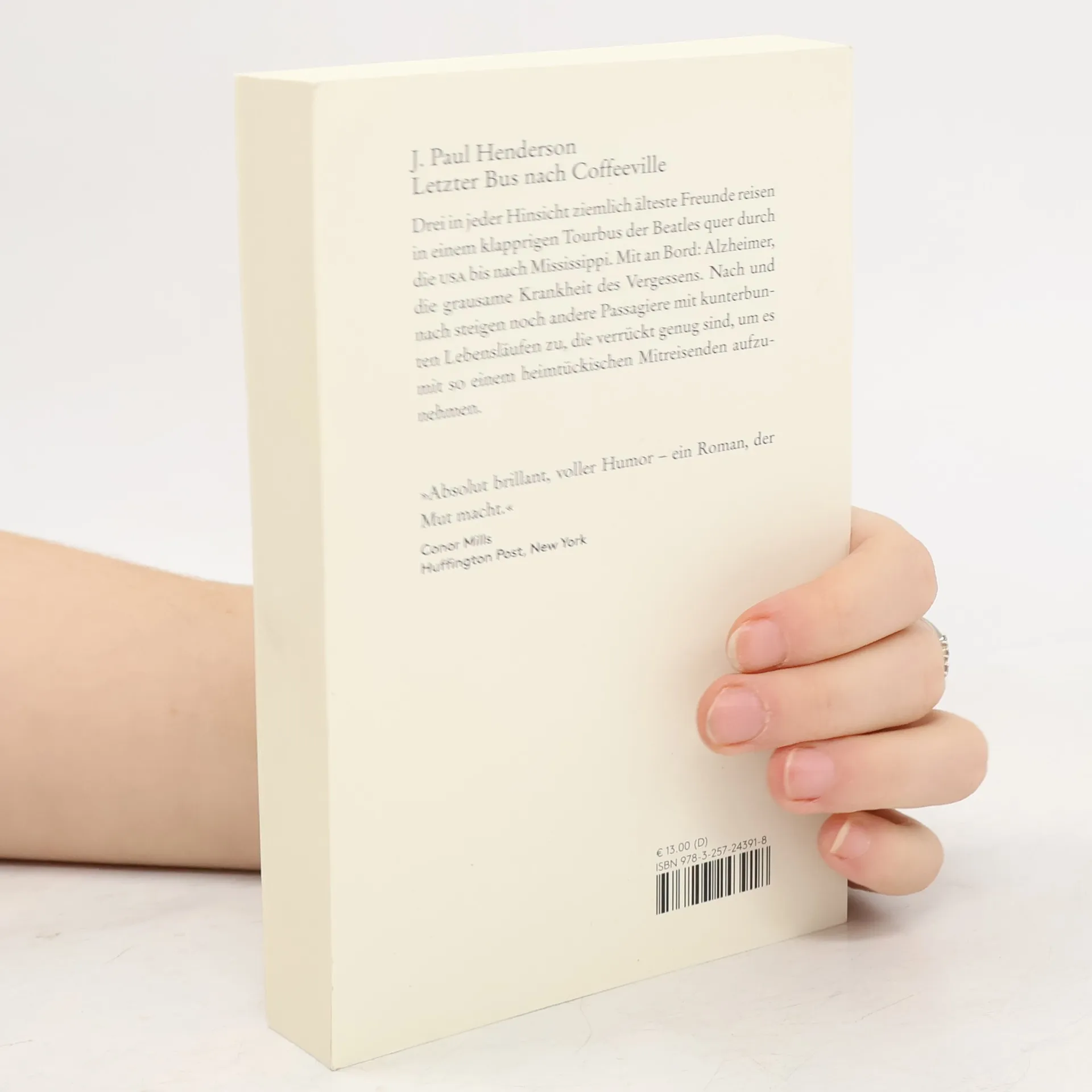 Drei in jeder Hinsicht ziemlich älteste Freunde reisen in einem klapprigen Tourbus der Beatles quer durch die USA bis nach Mississippi. Mit an Bord: Alzheimer, die grausame Krankheit des Vergessens. Nach und nach steigen noch andere Passagiere mit kunterbunten Lebensläufen zu, die verrückt genug sind, um es mit so einem heimtückischen Mitreisenden aufzunehmen. Ein Buch, bei dem man ebenso oft Tränen weint wie Tränen lacht und das man dabeihaben will, wenn’s im eigenen Leben mal nichts mehr zu lachen gibt.
