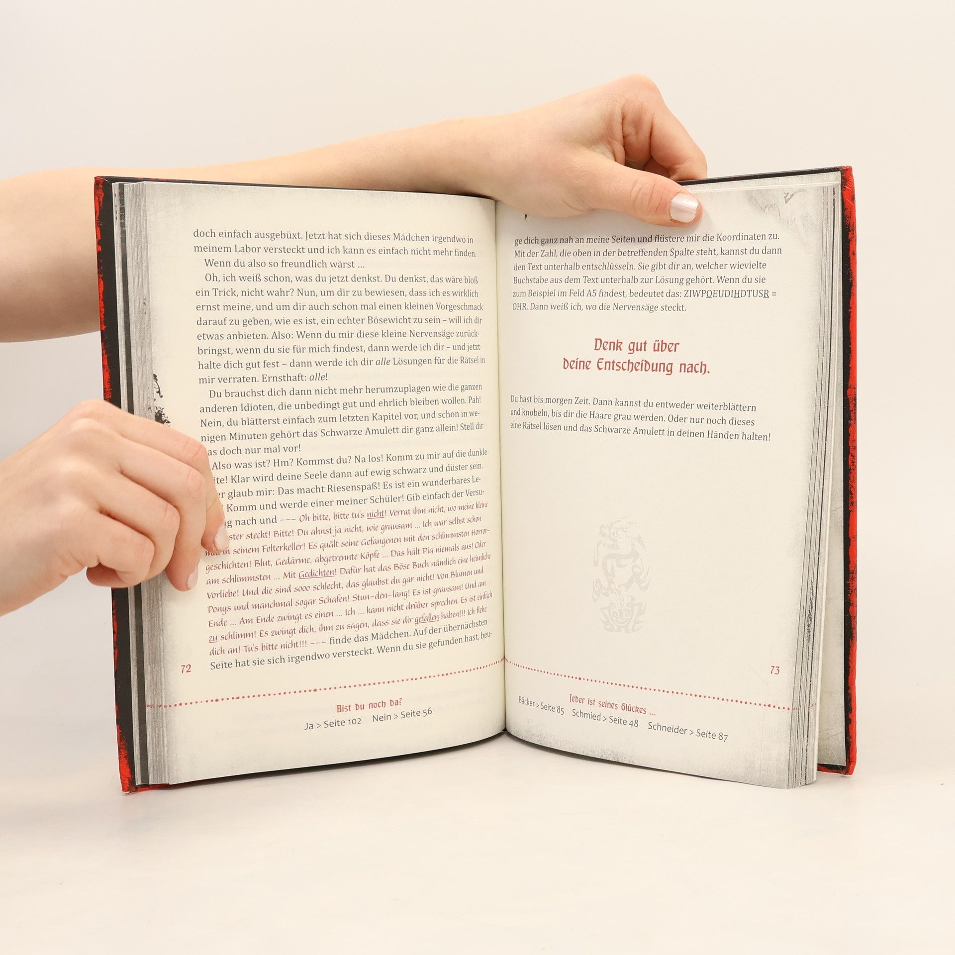 Ein interaktives Abenteuer - nur für Mutige! Ein Buch kann ein guter Freund sein – oder ein raffinierter Widersacher wie dieses hier! Mit kniffeligen Rätseln, schaurig-schönen Illustrationen, lustigen Geschichten und etwas schwarzem Humor fesselt das böse Buch seine Leser – selbst der größte Lesemuffel kann (und will) nicht mehr entkommen.