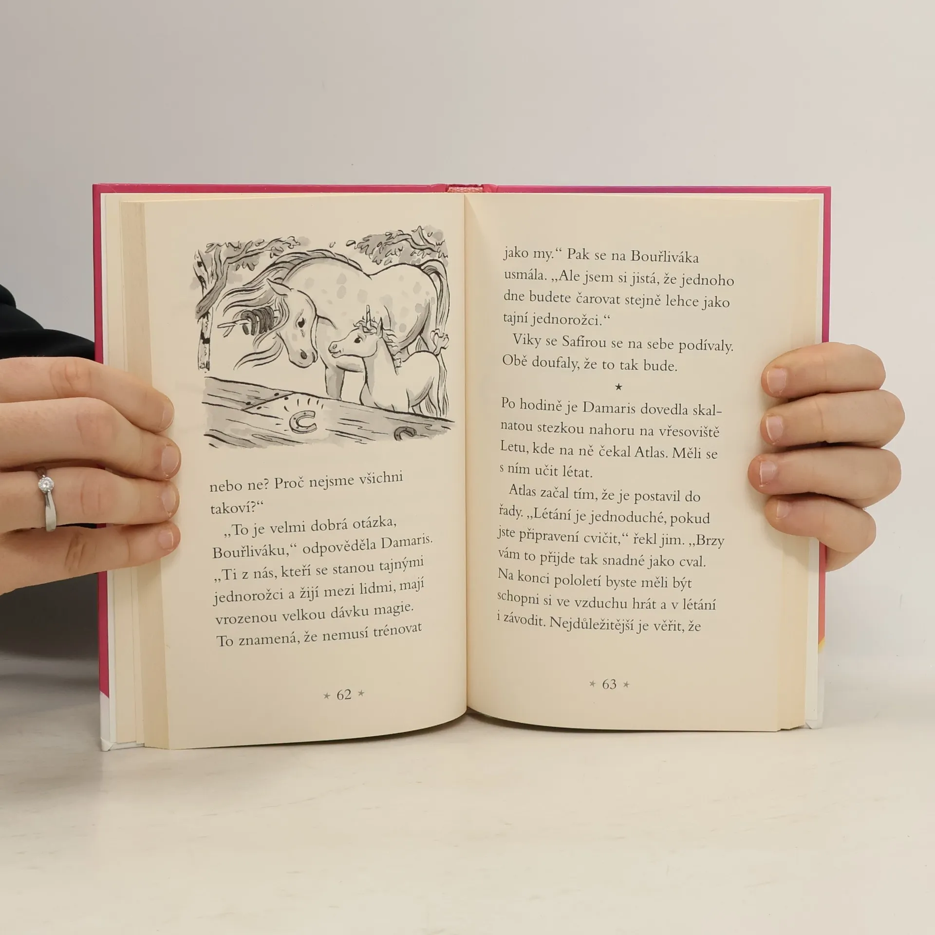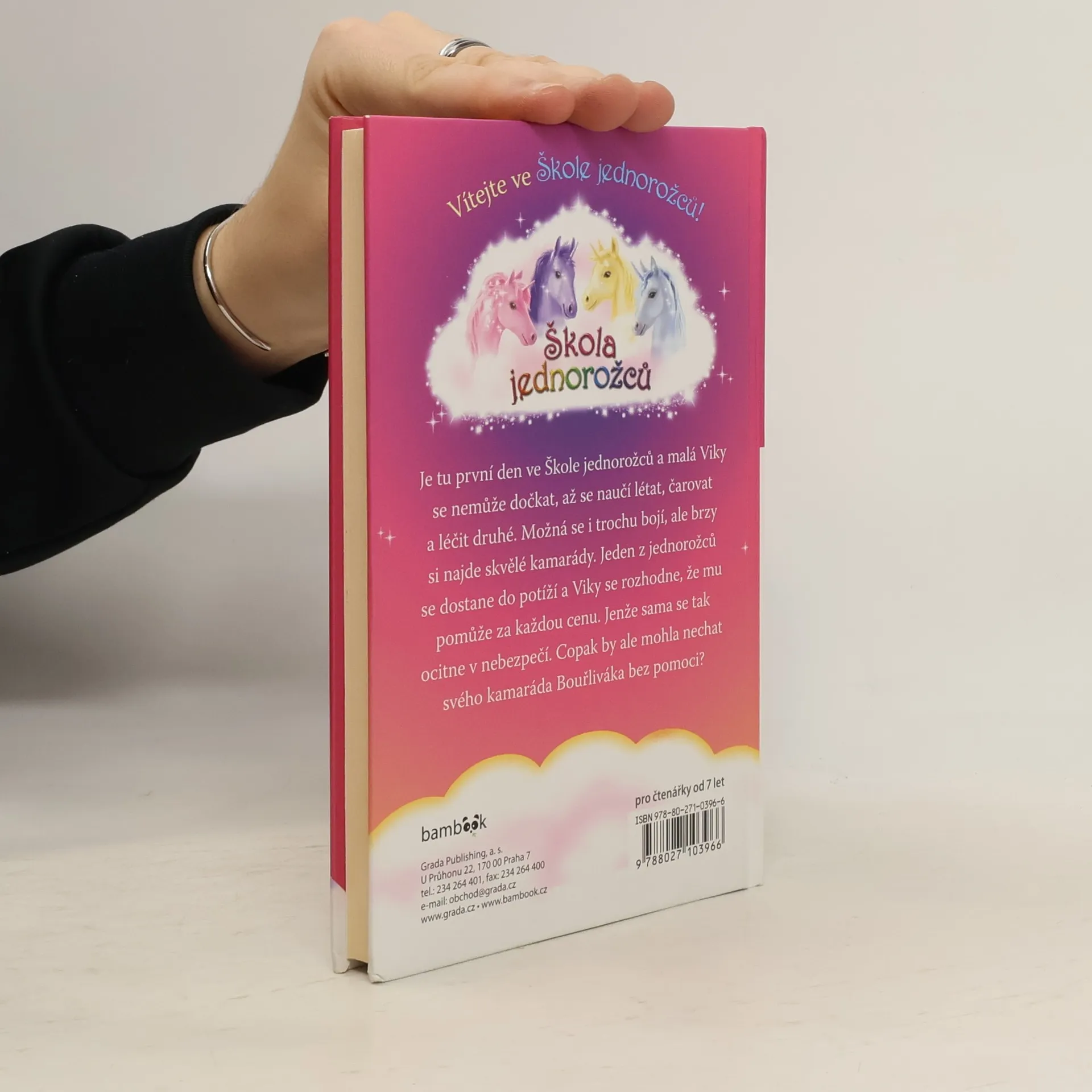 Je tu první den ve Škole jednorožců a malá Viky se nemůže dočkat, až se naučí létat, čarovat a léčit druhé. Možná se i trochu bojí, ale brzy si najde skvělé kamarády. Jeden z jednorožců se dostane do potíží a Viky se rozhodne, že mu pomůže za každou cenu. Jenže sama se tak ocitne v nebezpečí. Copak by ale mohla nechat svého kamaráda Bouřliváka bez pomoci?