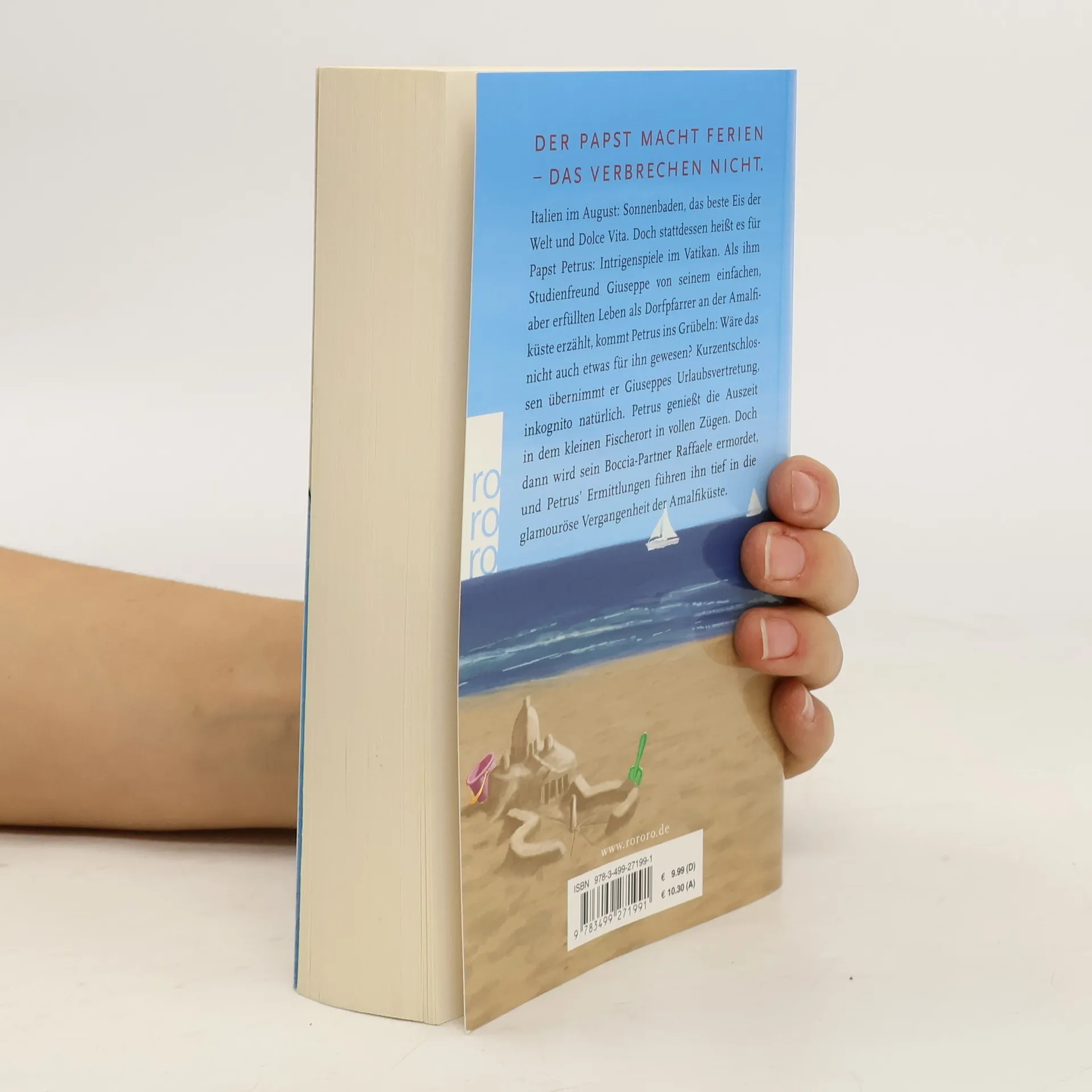 Der Papst macht Ferien – das Verbrechen nichtItalien im August: Sonnenbaden, das beste Eis der Welt und Dolce Vita. Doch stattdessen heißt es für Papst Petrus: Intrigenspiele im Vatikan. Als ihm Studienfreund Giuseppe von seinem einfachen, aber erfüllten Leben als Dorfpfarrer an der Amalfiküste erzählt, kommt Petrus ins Grübeln: Wäre das nicht auch etwas für ihn gewesen? Kurzentschlossen übernimmt er Giuseppes Urlaubsvertretung, inkognito natürlich. Petrus genießt die Auszeit in dem kleinen Fischerort in vollen Zügen. Doch dann wird sein Boccia-Partner Raffaele ermordet, und Petrus‘ Ermittlungen führen ihn tief in die glamouröse Vergangenheit der Amalfiküste.
