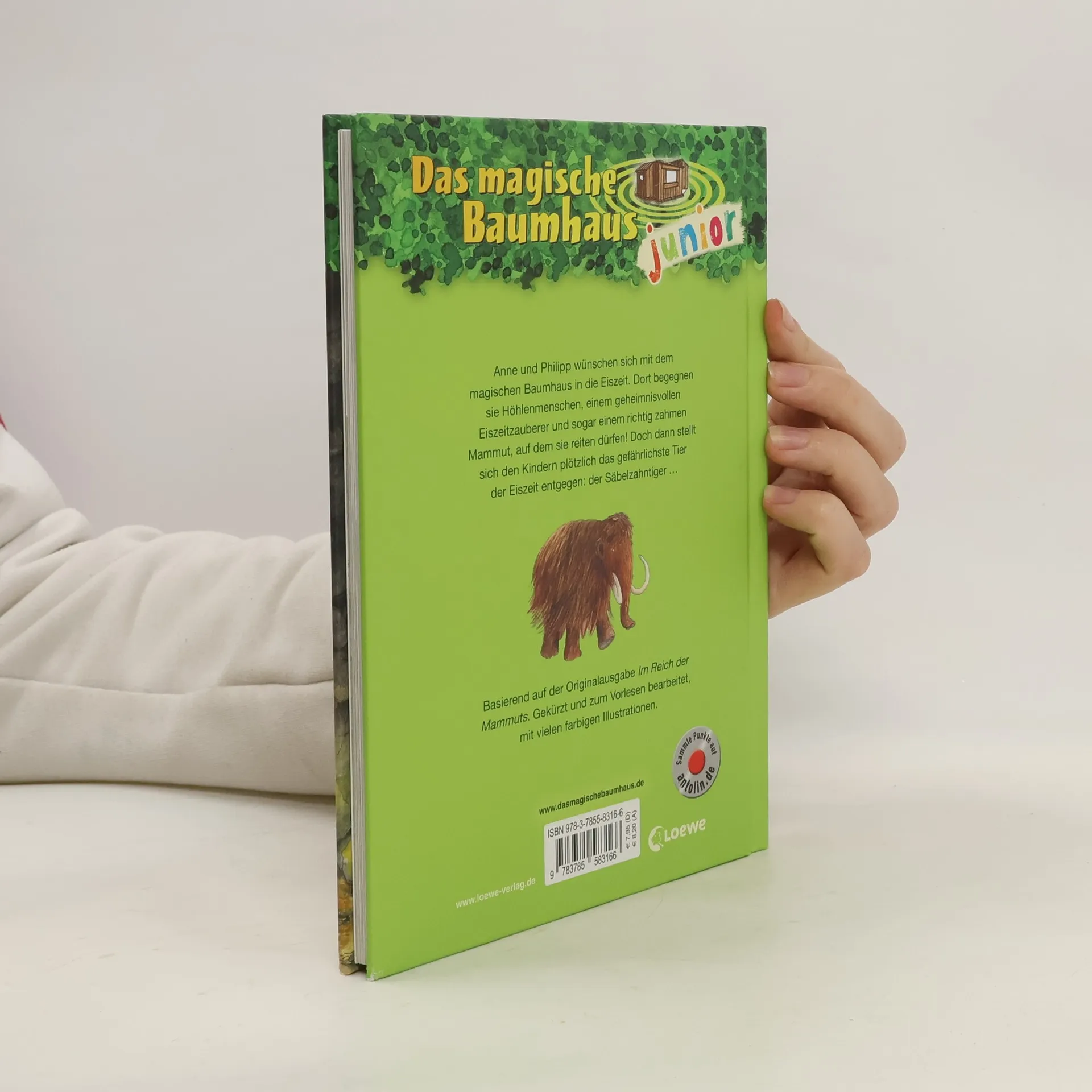 Das Buch ist bei deiner Buchhandlung vor Ort und bei vielen Online-Buchshops erhältlich! + Bücher, die Kinder gerne lesen wollen + Beliebte Themen: Abenteuer, Tiere und fremde Länder + Hochwertiges Hardcover + Mit vielen Illustrationen + Bereits über 10 Millionen verkaufte Bücher der Baumhaus-Reihe + Ausgewogenes Text-Bild-Verhältnis + Große Schrift + Kurze Kapitel + Anne und Philipp wünschen sich mit dem magischen Baumhaus in die Eiszeit . Dort begegnen sie Höhlenmenschen , einem geheimnisvollen Eiszeitzauberer und sogar einem richtig zahmen Mammut , auf dem sie reiten dürfen! Doch dann stellt sich den Kindern plötzlich das gefährlichste Tier der Eiszeit entgegen: der Säbelzahntiger ... Basierend auf der Originalausgabe Das magische Baumhaus – „ Im Reich der Mammuts “. Gekürzt und zum Vorlesen bearbeitet, mit vielen farbigen Illustrationen. Die beliebte Kinderbuch-Reihe von Bestsellerautorin Mary Pope Osborne zum Vorlesen und ersten Selberlesen. Die Geschwister Anne und Philipp reisen mit dem magischen Baumhaus durch die Zeit, entdecken ferne Länder und erleben spannende Abenteuer. Mit vielen bunten Bildern, besonders für Kinder ab 6 Jahren geeignet.