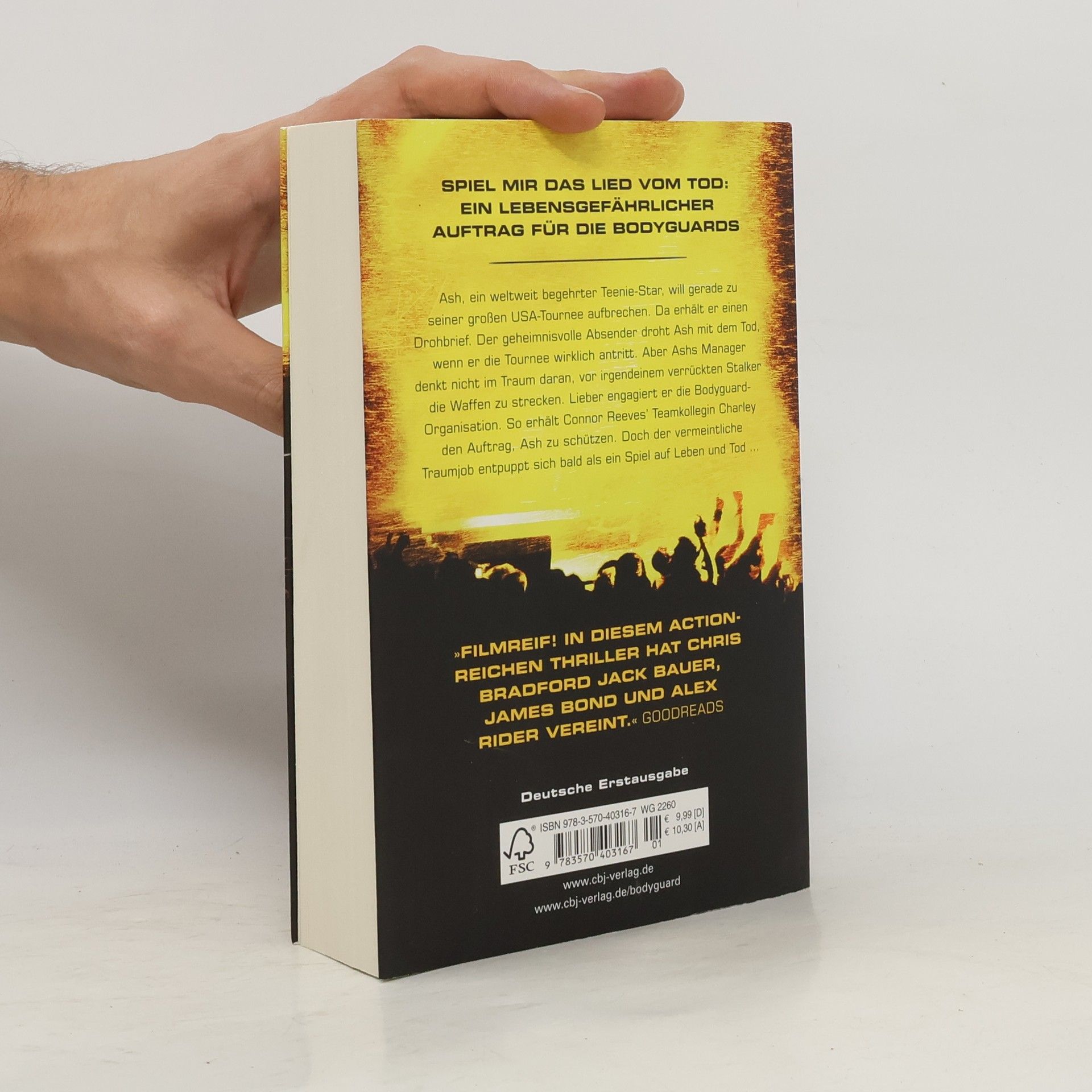 Connors beste Freundin und ihr gefährlichster Einsatz Ash, ein weltweit begehrter Teenie- Star, will gerade zu seiner großen USA-Tournee aufbrechen. Da erhält er einen Drohbrief. Der geheimnisvolle Absender droht Ash mit dem Tod, wenn er die Tournee wirklich antritt. Aber Ashs Manager denkt nicht im Traum daran, vor irgendeinem verrückten Stalker die Waffen zu strecken. Lieber engagiert er die Bodyguard-Organisation. So erhält Connor Reeves' Teamkollegin Charley den Auftrag, Ash zu schützen. Doch als unerwartet ihr Inkognito auffliegt, geht es plötzlich um Leben und Tod … Erfolgsgarant Chris Bradford liefert mit „Bodyguard“ kugelsichere Action kombiniert mit explosiven Showdowns.