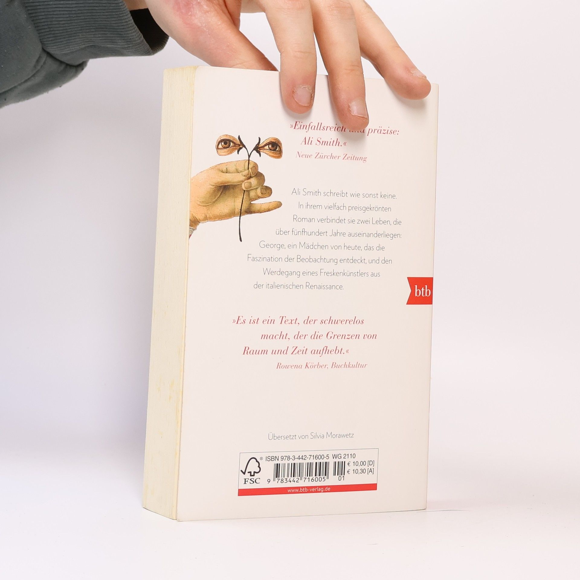 Ali Smith schreibt wie sonst keine. In ihrem vielfach preisgekrönten Roman verbindet sie zwei Leben, die über fünfhundert Jahre auseinanderliegen: George, ein Mädchen von heute, das die Faszination der Beobachtung entdeckt, und den Werdegang eines Freskenkünstlers aus der italienischen Renaissance. Mit Witz, sprachlicher Brillanz und einer ansteckenden Freude am Spiel mit Formen, Zeiten, Wahrheiten und Fiktionen erzählt die britische Autorin vom Abenteuer der Kunst, vom Sehen und Gesehenwerden, vom Wunder, ein Mensch zu sein.