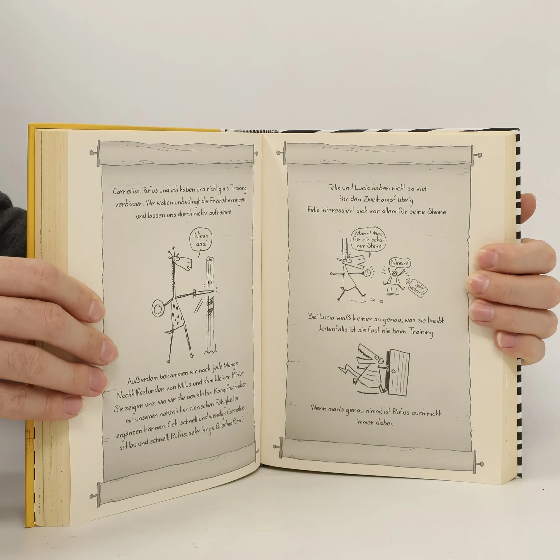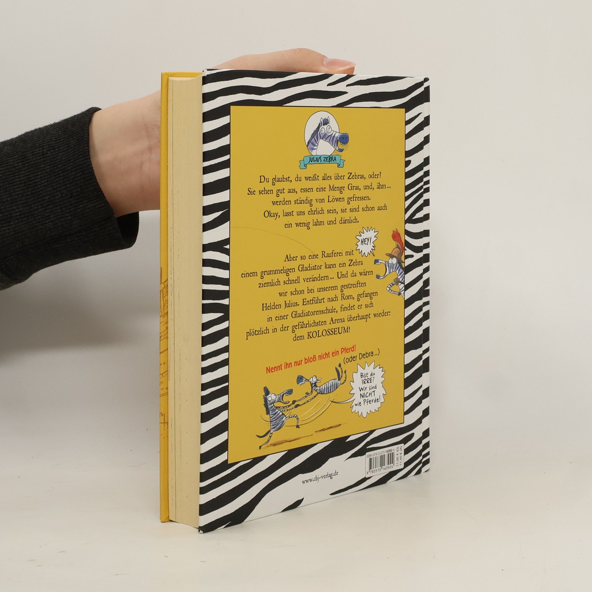 Du glaubst du weißt alles über Zebras? Du hast ja keine Ahnung! Julius Zebra ist eigentlich ganz zufrieden mit seinem Leben. Wenn er nur nicht zum Trinken immer an dieses stinkige Wasserloch müsste. Und überall diese Löwen … Dann, eines Tages wird Julius entführt. Nach Rom. Und plötzlich findet er sich mitten in der Arena als Gladiator wieder! Zum Glück ist er nicht allein, denn die Ausbildung ist hart. Gemeinsam mit seinen tierischen Freunden wird Julius versehentlich zum großen Held der Arena. Und das trotz der komischen Windeln, die sie dabei tragen müssen … Ausstattung: Mit s/w Illus