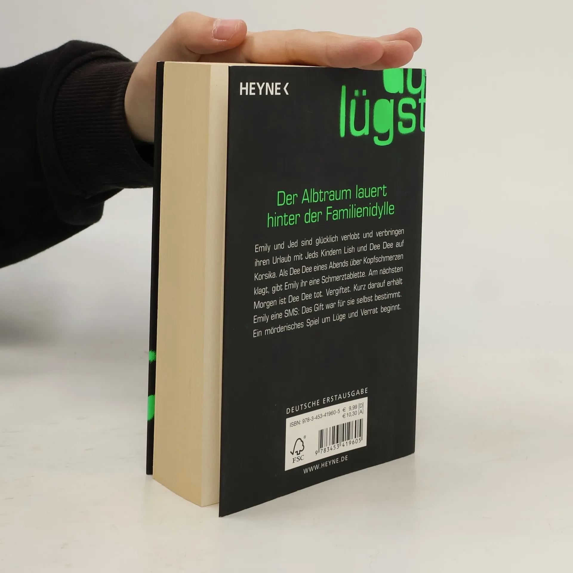 Emily und Jed sind glücklich verlobt und verbringen ihren Urlaub mit Jeds Kindern Lish und Dee Dee auf Korsika. Als Dee Dee eines Abends über Kopfschmerzen klagt, gibt Emily ihr eine Schmerztablette. Am nächsten Morgen ist Dee Dee tot. Vergiftet. Kurz darauf erhält Emily eine SMS: Das Gift war für sie bestimmt. Ein mörderisches Spiel um Lüge und Verrat beginnt ...