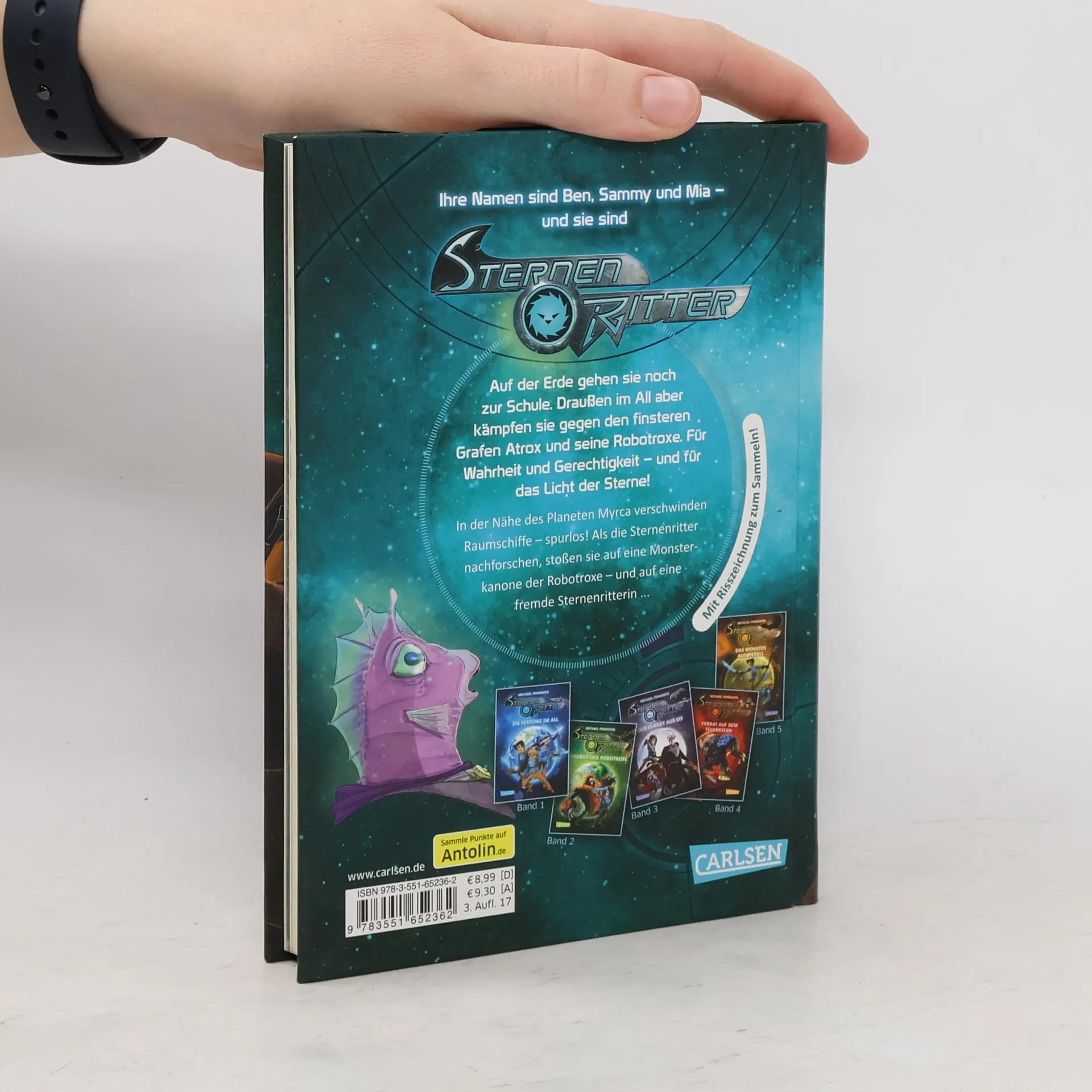 Ihren Schulstress vergessen Ben, Sammy und Mia bei ihren galaktischen Abenteuern als Sternenritter. Über 160.000 kleine und große Leser sind schon mitgeflogen. Zu Hause auf der Erde denkt jeder, die drei wären ganz normale Schüler. Aber draußen im All kämpfen Ben, Sammy und Mia gegen den finsteren Grafen Atrox und seine Robotroxe. In der Nähe des Planeten Myrca verschwinden Raumschiffe - spurlos! Als die Sternenritter nachforschen, stoßen sie auf eine Monsterkanone der Robotroxe - und auf eine fremde Sternenritterin ... Für Star Wars-Fans ab 8 Jahren: Voll spannender Action, Freundschaft und Abenteuer Sternenritter ist eine fantasievolle Serie für junge Science Fiction- und Star-Wars-Fans mit vielen Bildern, kurzen Kapiteln, warmherzig erzählt – das perfekte „erste richtige Buch“ für Leseanfänger. Vom Bestsellerautor Michael Peinkofer – mit Raumschiffzeichnungen zum Sammeln in jedem Band! „Unser 10-jähriger Sohn liebt Sternenritter! Ich kann gar nicht so schnell nachkaufen, wie er sie liest. Darüber ist er sogar generell ans Lesen gekommen. “ (Elternstimme)