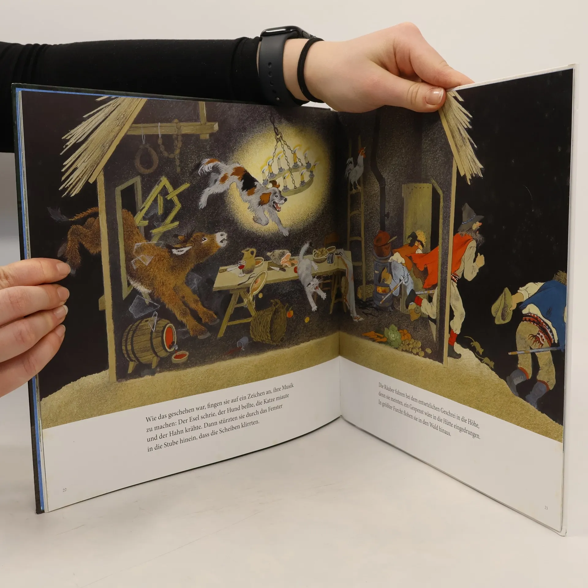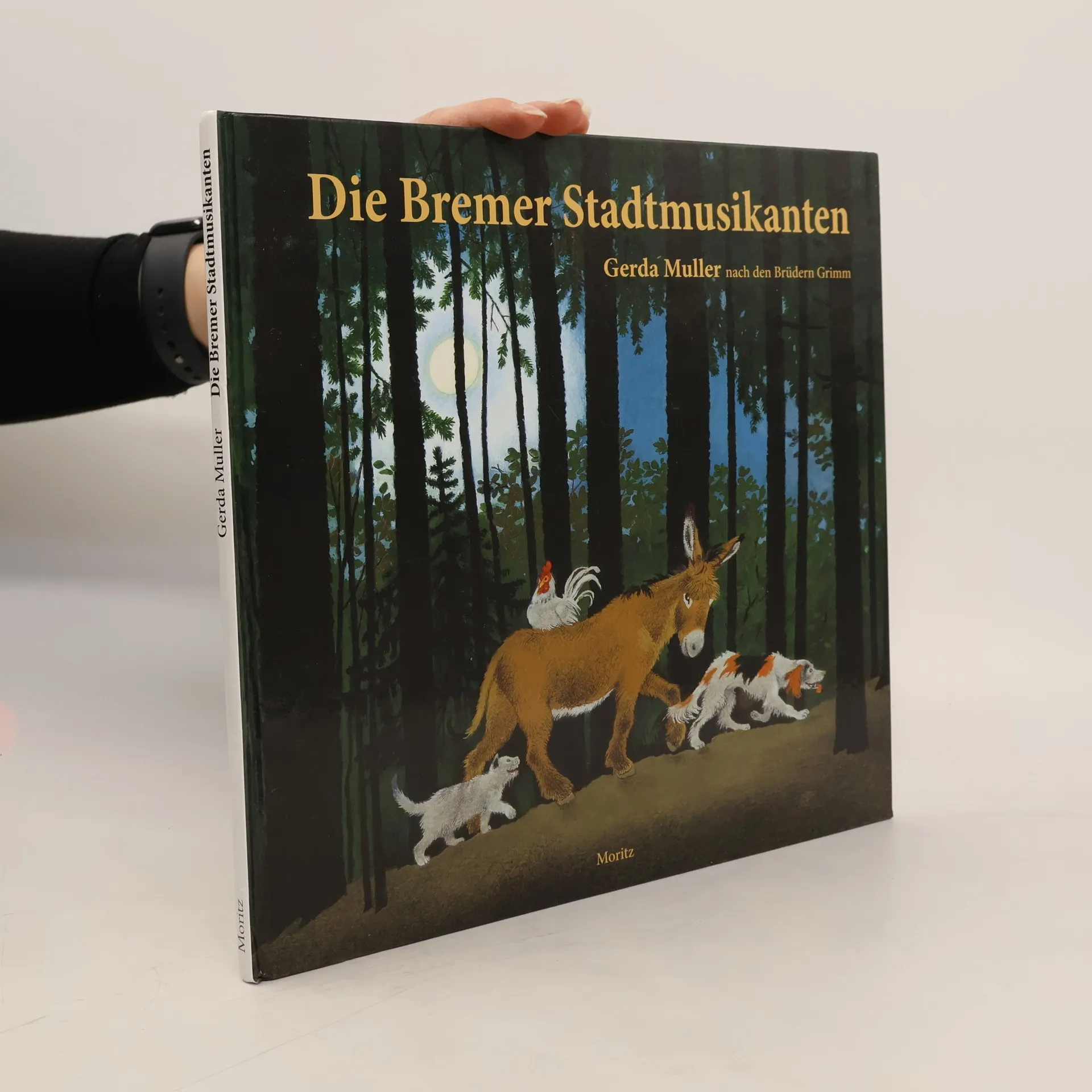 Das berühmte Märchen der Brüder Grimm, neu illustriert von Gerda Muller, der Grande Dame der europäischen Illustration. Diese Geschichte, 1819 zum ersten Mal von den Brüdern Grimm aufgeschrieben, kennen wir alle: Ein alter Esel ist seinem Herrn nicht mehr nützlich und wird mit dem Tode bedroht. Also macht er sich auf nach Bremen, um dort Stadtmusikant zu werden. Auf seinem Weg trifft er eine Katze, einen Hund und einen Hahn, denen alle das gleiche Schicksal droht und die sich ihm anschließen … Zu Gerda Mullers 90. Geburtstag erscheint diese großformatige Ausgabe der Bremer Stadtmusikanten. Auf imponierenden Doppelseiten erzählt und illustriert sie das Märchen der vier aus der Gesellschaft verbannten Tiere, die ihr Leben selbst in die Hand nehmen.