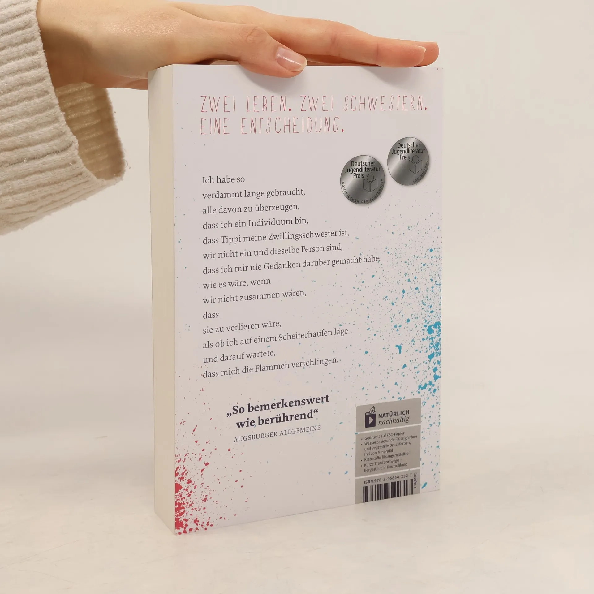 Die Schwestern Tippi und Grace sind wie andere Teenager – sie streiten sich, verlieben sich in Jungs, gehen ihren Hobbies nach ... Doch das Besondere an ihnen ist: Sie sind sich mehr verbunden als andere Schwestern – sie sind an der Hüfte zusammengewachsen. Aus der Ich-Perspektive erfahren wir, wie es ist, wenn man nie allein ist und vor eine Wahl gestellt wird, die über Leben und Tod entscheidet. Die preisgekrönte Autorin, Sarah Crossan, beschreibt in ihrer gewohnt mitreißenden Sprache das Leben zweier ganz außergewöhnlicher Schwester. Eine berührende Geschichte über Individualität und was es heißt, einen anderen Menschen zu lieben.