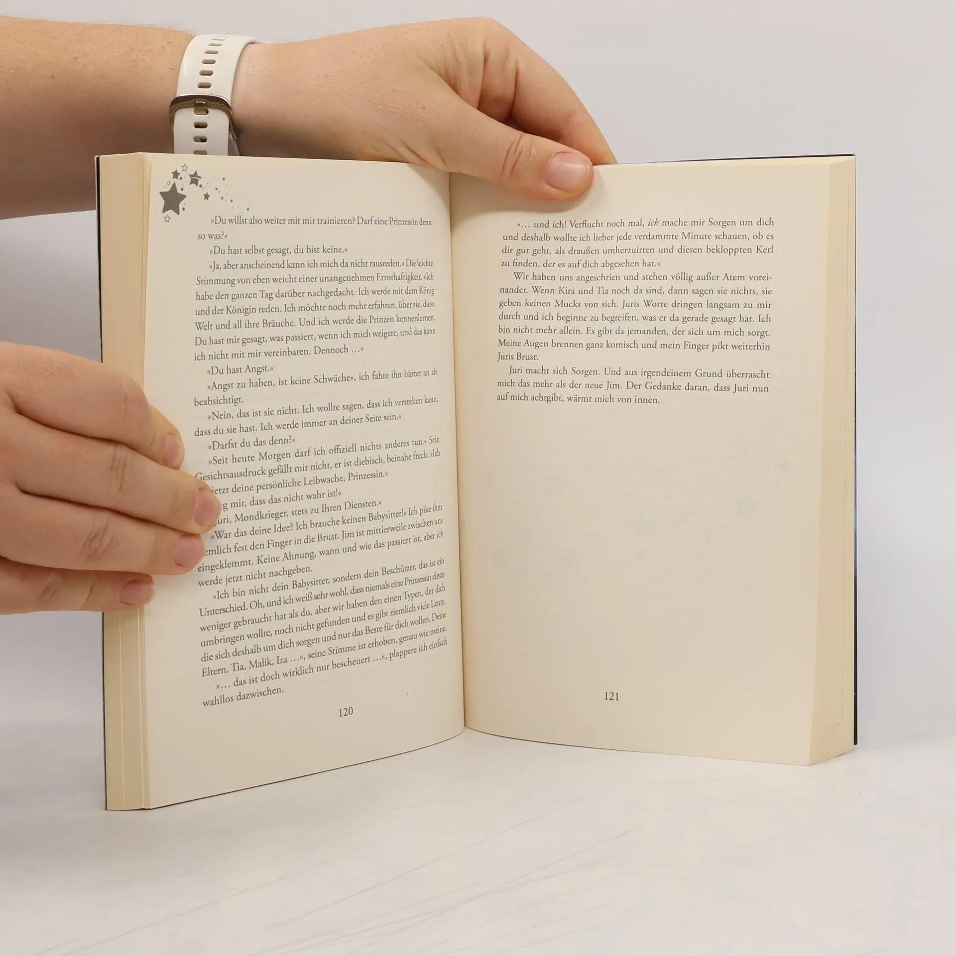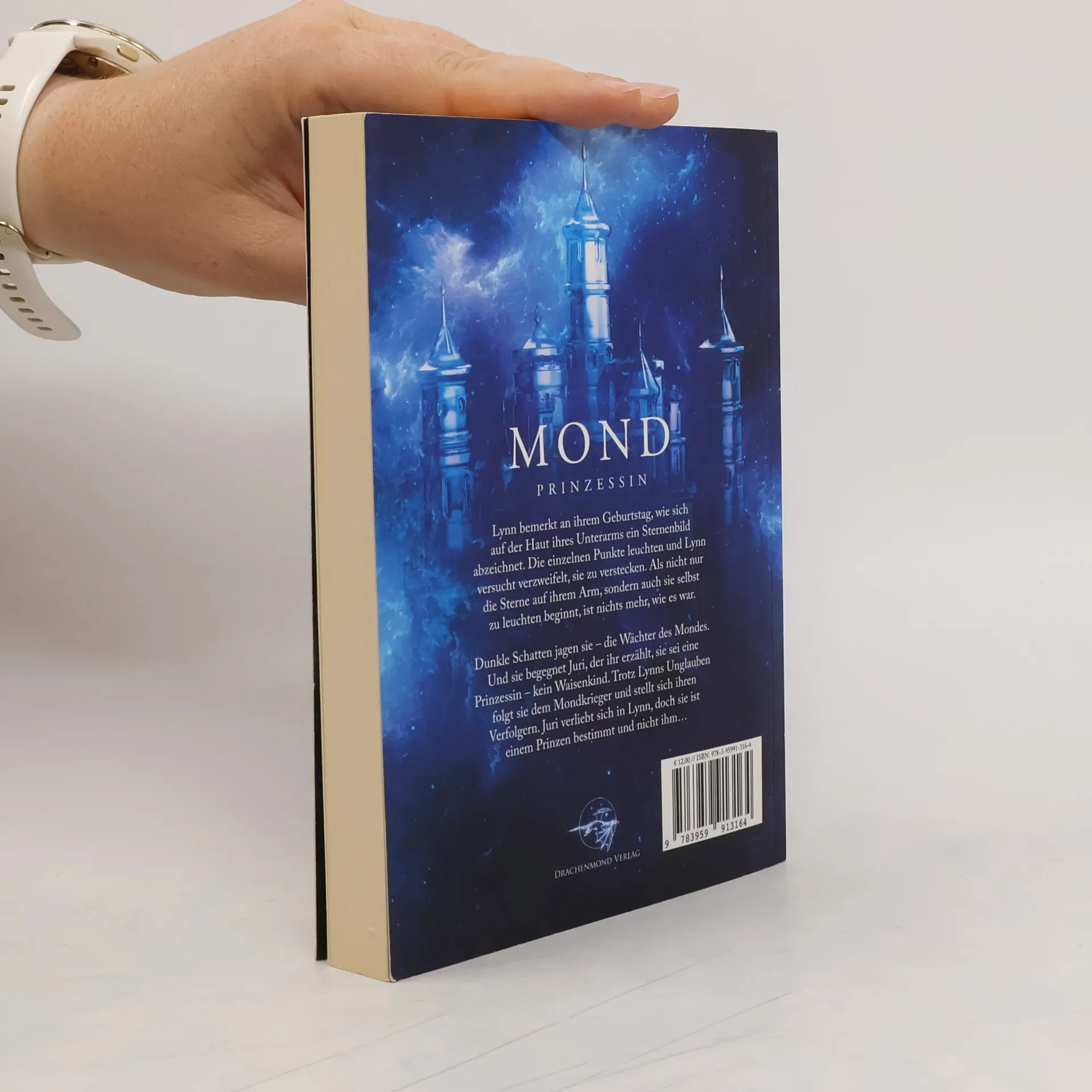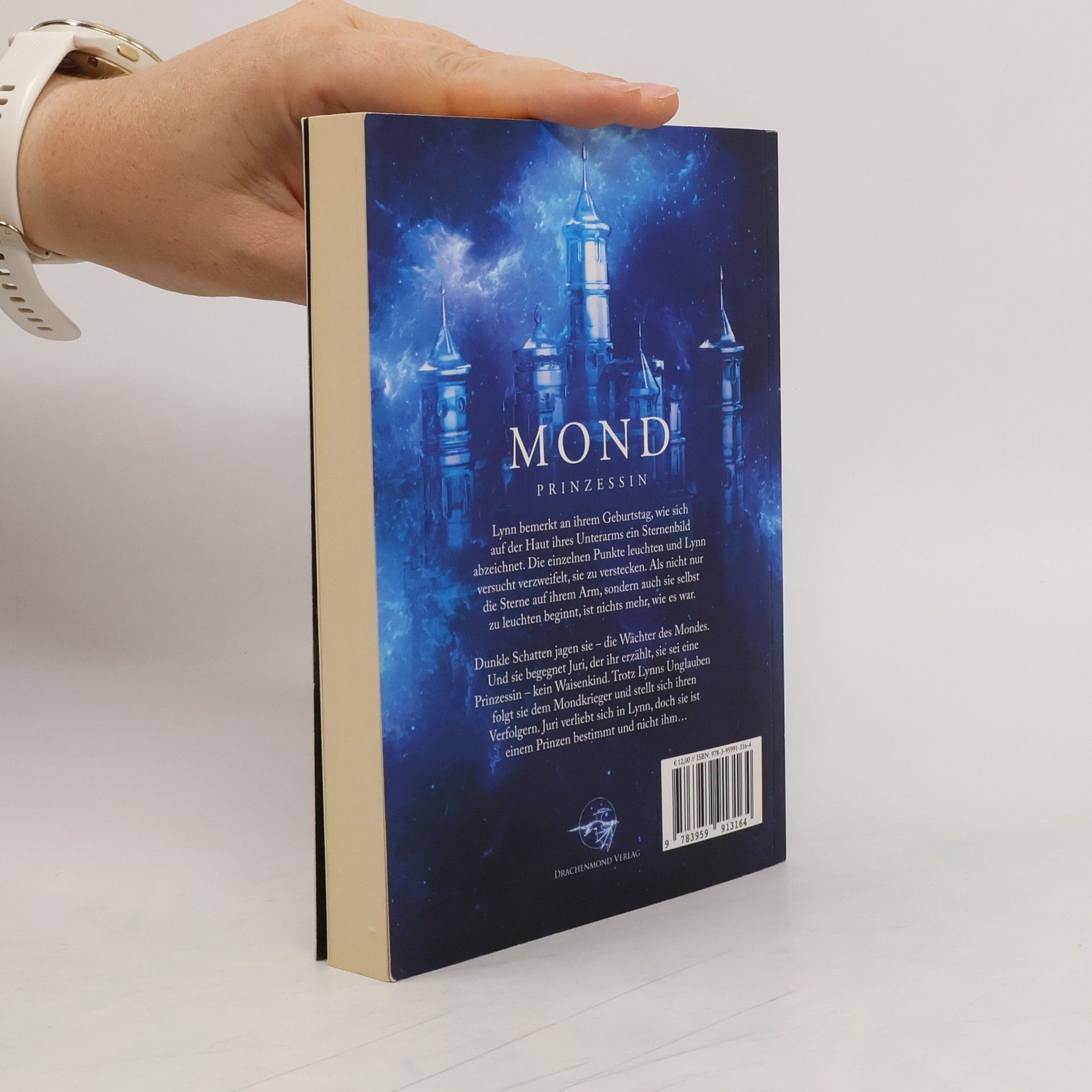 Lynn bemerkt an ihrem Geburtstag, wie sich auf der Haut ihres Unterarms ein Sternenbild abzeichnet. Die einzelnen Punkte leuchten und Lynn versucht verzweifelt, sie zu verstecken. Als nicht nur die Sterne auf ihrem Arm, sondern auch sie selbst zu leuchten beginnt, ist nichts mehr, wie es war. Dunkle Schatten jagen sie – die Wächter des Mondes. Und sie begegnet Juri, der ihr erzählt, sie sei eine Prinzessin – kein Waisenkind. Trotz Lynns Unglauben folgt sie dem Mondkrieger und stellt sich ihren Verfolgern. Juri verliebt sich in Lynn, doch sie ist einem Prinzen bestimmt und nicht ihm… Mondprinzessin - Lovelybooks Leserpreis 2016 Fantasy & Science Fiction Teil 1