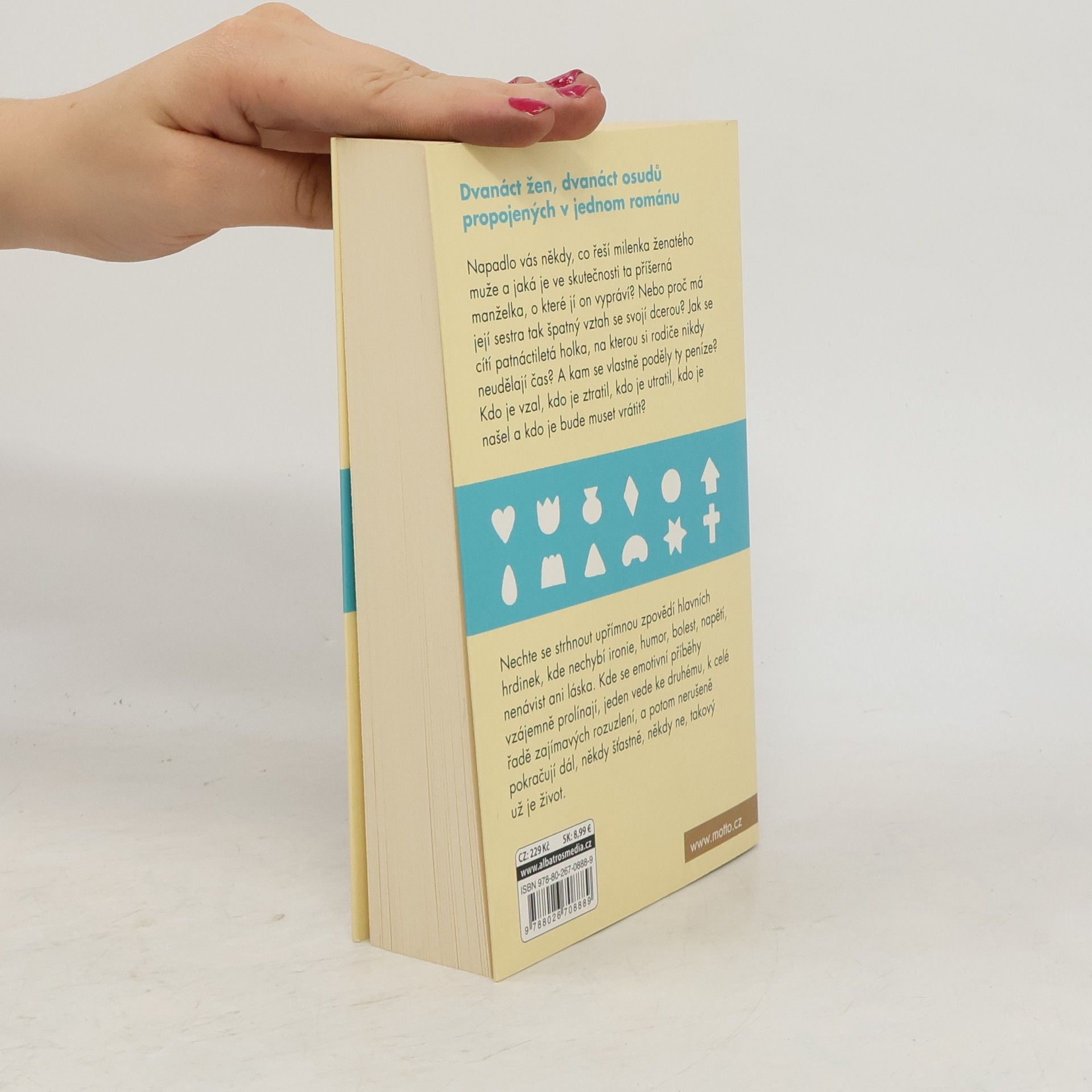 Dvanáct žen, dvanáct osudů propojených v jednom románu. Napadlo vás někdy, co řeší milenka ženatého muže a jaká je ve skutečnosti ta příšerná manželka, o které jí on vypráví? Nebo proč má sestra manželky tak špatný vztah se svojí dcerou. Jak se vlastně cítí ta patnáctiletá holka, na kterou si rodiče nikdy neudělají čas? A kam se vlastně poděly ty peníze? Kdo je vzal, kdo je ztratil, kdo je utratil, kdo je našel a kdo je bude muset vrátit? Nechte se strhnout upřímnou zpovědí hlavních hrdinek, kde nechybí ironie, humor, bolest, napětí, nenávist ani láska. Kde se emotivní příběhy vzájemně prolínají, jeden vede ke druhému, k celé řadě zajímavých rozuzlení a potom nerušeně pokračují dál, někdy šťastně, někdy ne, takový už je život.
