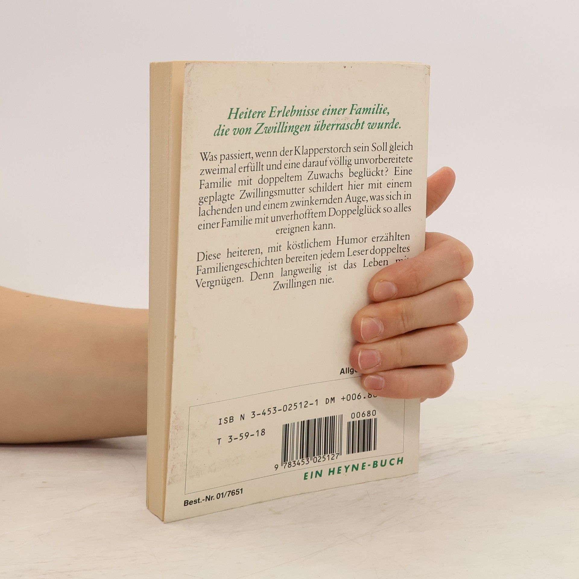 Eine glücklich-geplagte Zwillingsmutter schildert hier mit einem lachenden und einem zwinkernden Auge, was in einer Familie mit unverhofftem Doppelglück so alles passiert. Diese heiteren Familiengeschichten, ausgeplaudert mit köstlichem Humor von einer lebensklugen Frau, die sich von ihrem zweifachen Zuwachs nie unterkriegen läßt, bereiten jedem Leser doppeltes Schmunzelvergnügen.