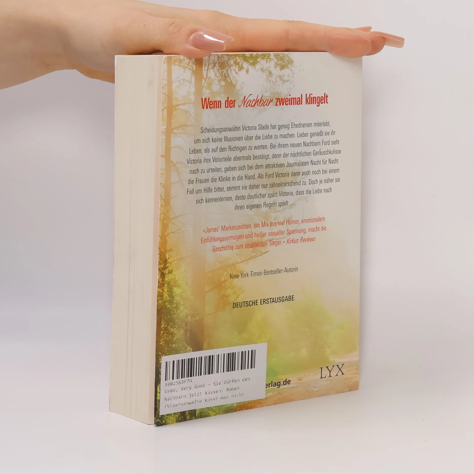 Scheidungsanwältin Victoria Slade hat zwar schon genug hässliche Trennungen mitangesehen, um zu wissen, dass sie niemals heiraten will - aber nicht genug, um den Männern per se abzuschwören. Nur ihr neuer Nachbar Ford Dixon ist absolut tabu für sie, seit der atemberaubend attraktive Journalist sie in einem Fall um Unterstützung bat. Dass Ford die Suche nach der großen Liebe ebenfalls längst aufgegeben hat, kommt da gerade recht. Doch je mehr Zeit Victoria mit ihm verbringt, desto deutlicher spürt sie, dass ausgerechnet derjenige, der Gefühlen gegenüber genauso skeptisch ist wie sie, vielleicht der Mann fürs Leben sein könnte.