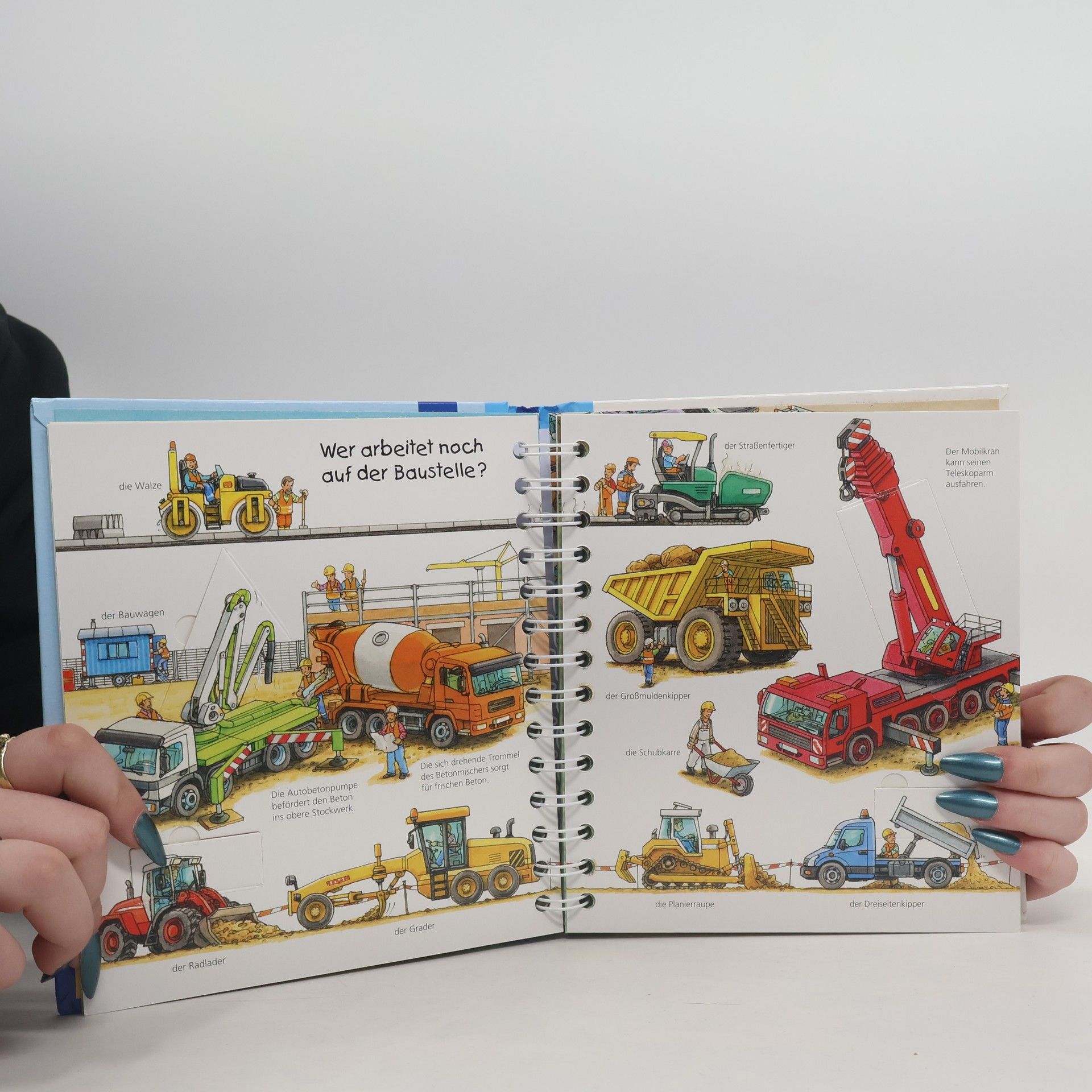 In diesem extradicken Bilderlexikon entdecken Kinder über 120 Fahrzeuge aus allen Bereichen: Stadtverkehr, Müllabfuhr und Straßenreinigung, Baustelle und Bauernhof, Feuerwehr, Polizei und THW. Sie lernen aber auch Flugzeuge, Schiffe, öffentliche Verkehrsmittel, Kinder-, Sport- und Spezialfahrzeuge kennen und benennen. Zahlreiche Bewegungsklappen zeigen, was die Fahrzeuge alles können.