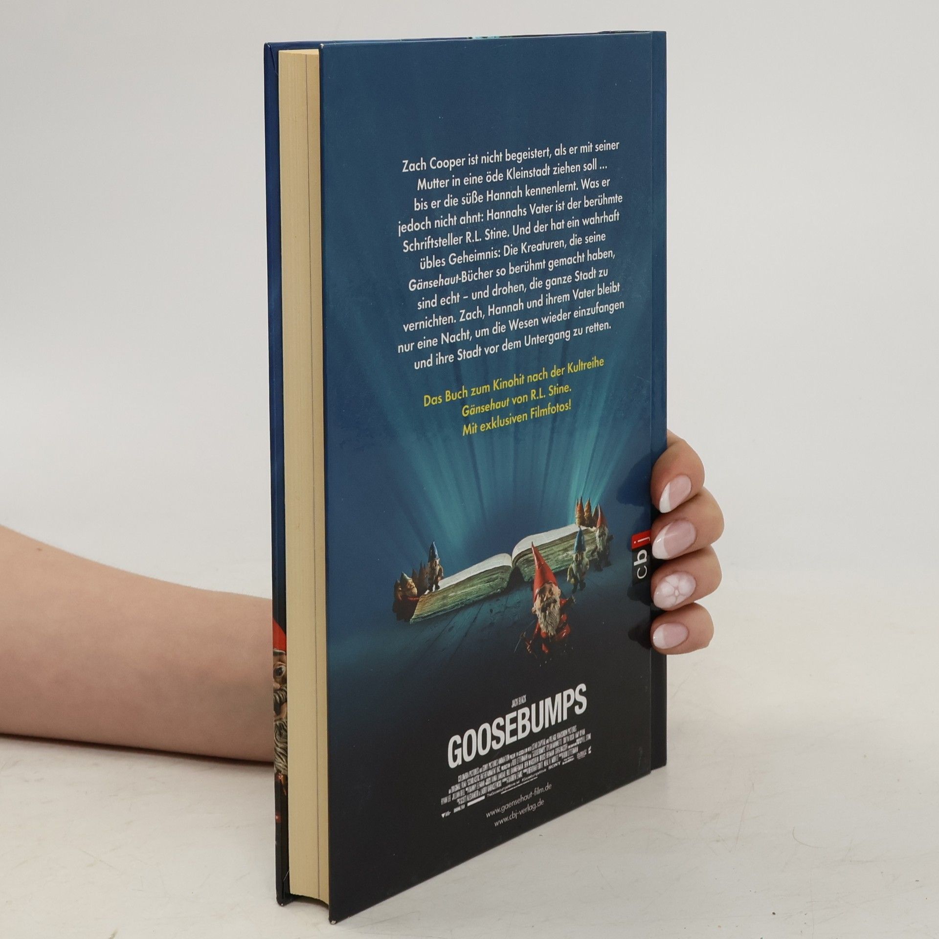 Zach Cooper ist nicht begeistert, als er mit seinen Eltern in eine öde Kleinstadt ziehen soll. Bis er die süße Hannah kennenlernt … Was er jedoch nicht ahnt: Hannahs Vater ist der berühmte Schriftsteller R. L. Stine, Autor der weltbekannten Gänsehaut-Bücher. Und der hat ein wahrhaft übles Geheimnis. Die Kreaturen, die seine Geschichten so berühmt gemacht haben, sind echt. Jetzt haben sie sich aus ihrem Gefängnis befreit und drohen, die ganze Stadt zu vernichten. Zach, Hannah und ihrem Vater bleibt nur eine Nacht, um die Wesen wieder einzufangen und ihre Stadt vor dem Untergang zu retten. Großartiges Gruselkino mit starken Animationen, hochkarätiger Besetzung – und einer hochspannenden Story zum Nachlesen! Mit exklusiven Filmfotos.