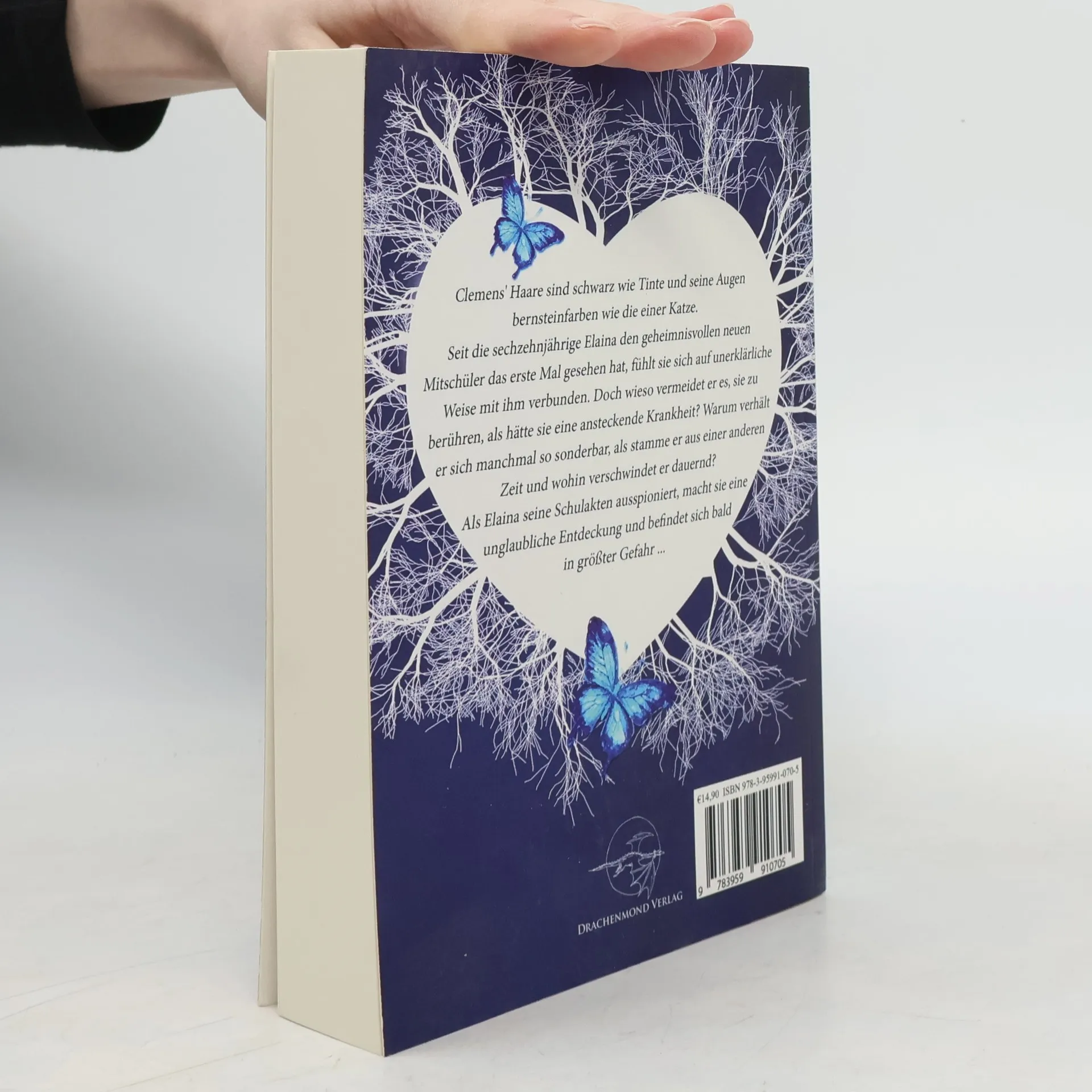 Clemens' Haare sind schwarz wie Tinte und seine Augen bernsteinfarben wie die einer Katze. Seit die sechzehnjährige Elaina den geheimnisvollen neuen Mitschüler das erste Mal gesehen hat, fühlt sie sich auf unerklärliche Weise mit ihm verbunden. Doch wieso vermeidet er es, sie zu berühren, als hätte sie eine ansteckende Krankheit? Warum verhält er sich manchmal so sonderbar, als stamme er aus einer anderen Zeit und wohin verschwindet er dauernd? Als Elaina seine Schulakten ausspioniert, macht sie eine unglaubliche Entdeckung und befindet sich bald in größter Gefahr...