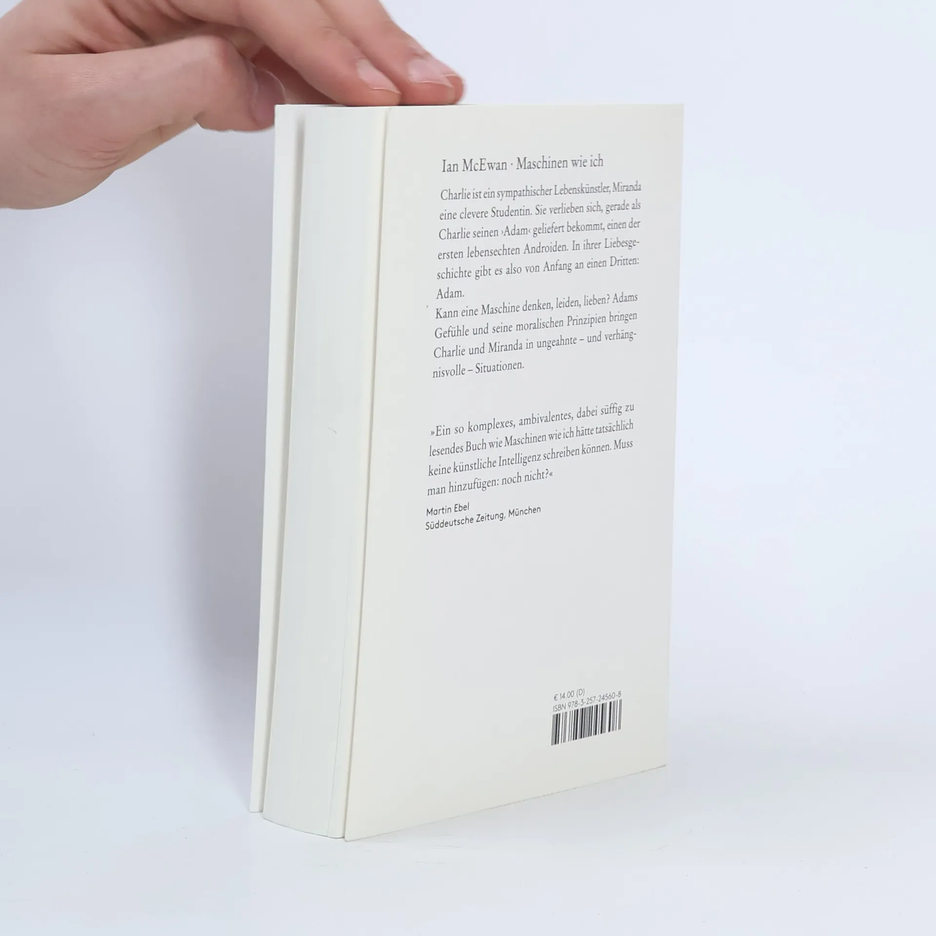 Charlie ist ein sympathischer Lebenskünstler, Miranda eine clevere Studentin. Sie verlieben sich, gerade als Charlie seinen ›Adam‹ geliefert bekommt, einen der ersten lebensechten Androiden. In ihrer Liebesgeschichte gibt es also von Anfang an einen Dritten: Adam. Kann eine Maschine denken, leiden, lieben? Adams Gefühle und seine moralischen Prinzipien bringen Charlie und Miranda in ungeahnte – und verhängnisvolle – Situationen.