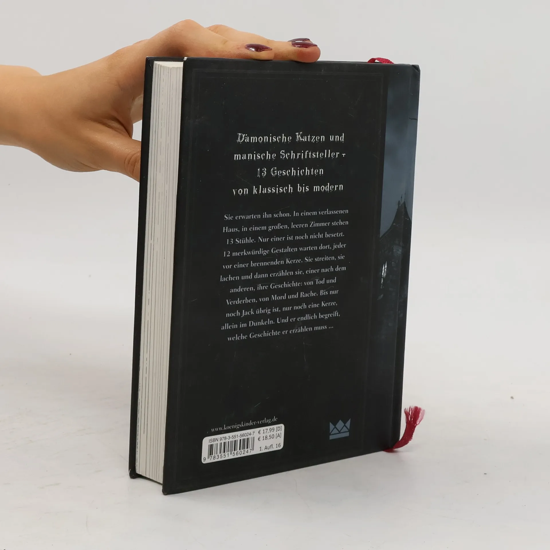 *** Dämonische Katzen und manische Schriftsteller – 13 Geschichten von klassisch bis modern *** Sie erwarten ihn schon. In einem verlassenen Haus, in einem großen, leeren Zimmer stehen 13 Stühle. Nur einer ist noch nicht besetzt. 12 merkwürdige Gestalten warten dort, jeder vor einer brennenden Kerze. Sie streiten, sie lachen und dann erzählen sie, einer nach dem anderen, ihre Geschichte: von Tod und Verderben, von Mord und Rache. Bis nur noch Jack übrig ist, nur noch eine Kerze, allein im Dunkeln. Und er endlich begreift, welche Geschichte er erzählen muss …