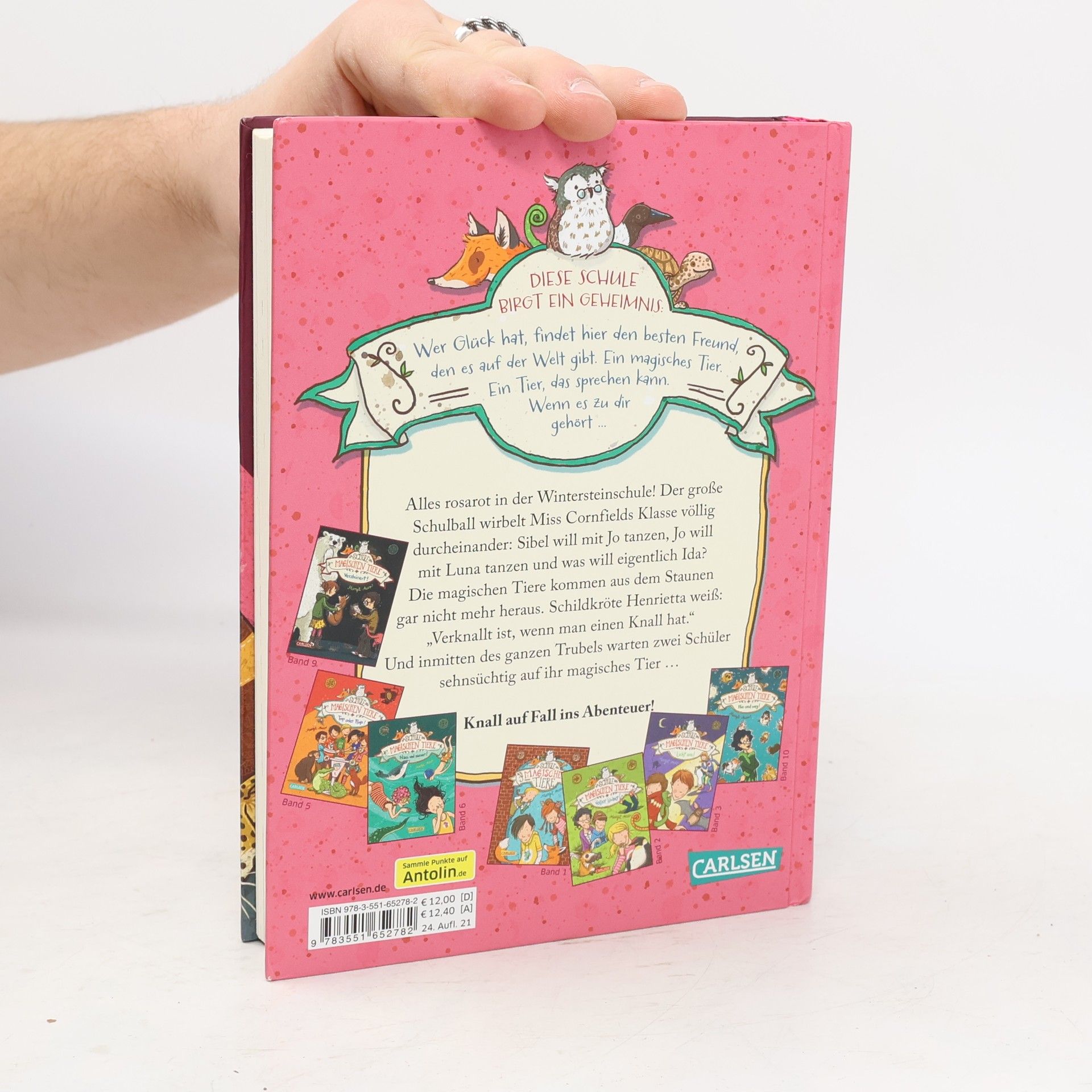 Jetzt kostenlos herunterladen – die App zur Serie! *** Wer in der Klasse wird heute ein magisches, sprechendes Tier erhalten? *** BAND 8: Alles rosarot in der Wintersteinschule! Der große Schulball wirbelt Miss Cornfields Klasse durcheinander: Sibel will mit Jo tanzen, Jo will mit Luna tanzen und was will eigentlich Ida? Die magischen Tiere kommen aus dem Staunen gar nicht mehr heraus. Schildkröte Henrietta weiß: „Verknallt ist, wenn man einen Knall hat.“ Inmitten des ganzen Trubels aber warten zwei Schüler sehnsüchtig auf ihr magisches Tier … *** DIE SCHULE DER MAGISCHEN TIERE: Diese Schule birgt ein Geheimnis: Wer Glück hat, findet hier den besten Freund, den es auf der Welt gibt. Ein magisches Tier. Ein Tier, das sprechen kann. Wenn es zu dir gehört ... *** Viele Bilder, viele kurze Kapitel, viel Lesespaß! Endlich da: Der achte Band der beliebten Bestseller-Reihe! Schon jetzt ein Kinderbuchklassiker