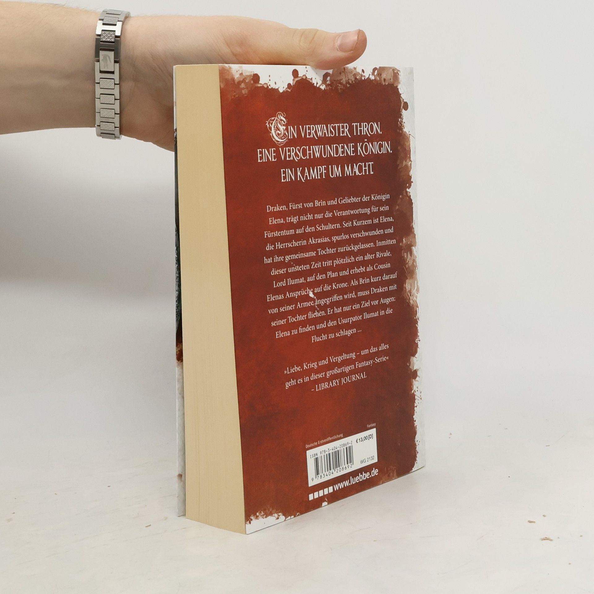 Ein verwaister Thron. Eine verschwundene Königin. Ein Kampf um Macht ... Draken, Fürst von Brîn und Geliebter der Königin Elena, trägt nicht nur die Verantwortung für sein Fürstentum auf den Schultern. Seit Kurzem ist Elena, die Herrscherin Akrasias, spurlos verschwunden und hat ihre gemeinsame Tochter zurückgelassen. Inmitten dieser unsteten Zeit tritt plötzlich ein alter Rivale, Lord Ilumat, auf den Plan und erhebt als Cousin Elenas Ansprüche auf die Krone. Als Brîn kurz darauf von seiner Armee angegriffen wird, muss Draken mit seiner Tochter fliehen. Er hat nur ein Ziel vor Augen: Elena zu finden und den Usurpator Ilumat in die Flucht zu schlagen ... „Liebe, Krieg und Vergeltung — um das alles geht es in dieser großartigen Fantasy-Serie“ —Library Journal