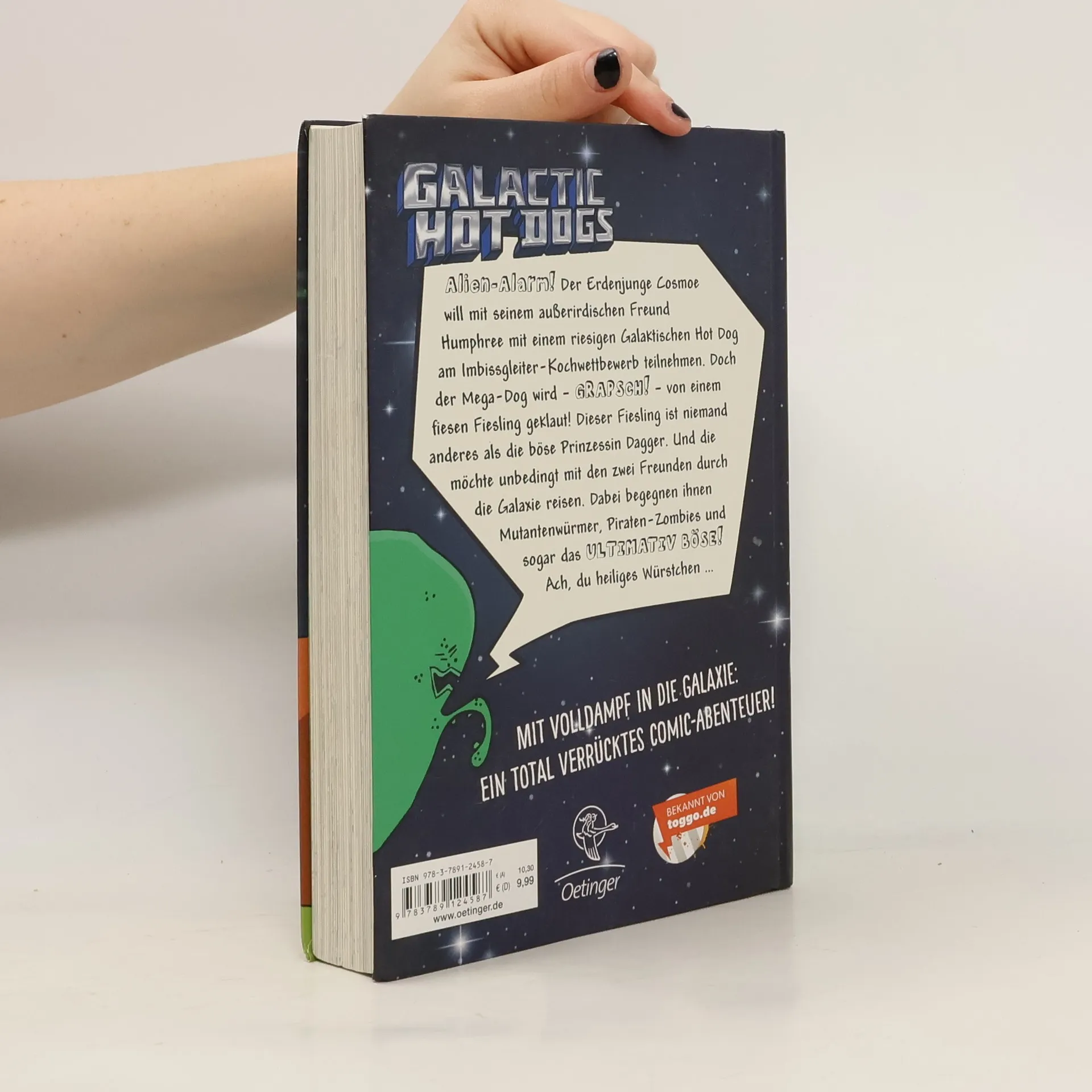 Seit der Erdenjunge Cosmoe ins Weltall katapultiert wurde, hat er viel zu tun. Zusammen mit dem durchgeknallten Alien Humphree bekämpft er Mutanten-Würmer und Piraten-Zombies, rettet nebenbei eine böse Prinzessin und hat fortan deren wütende und höchst gefährliche Mutter an der Backe. Nur für einen megaleckeren Hot Dog lassen die ungleichen Freunde die Bösewichte manchmal Bösewichte sein! Galactic Hot Dogs von Max Brailler ist ein wahnsinnig komisches und unglaublich schräges Comic-Phänomen für alle Fans von fiesen Aliens und jeder Menge verrückter Gadgets. Auch als E-Book erhältlich.