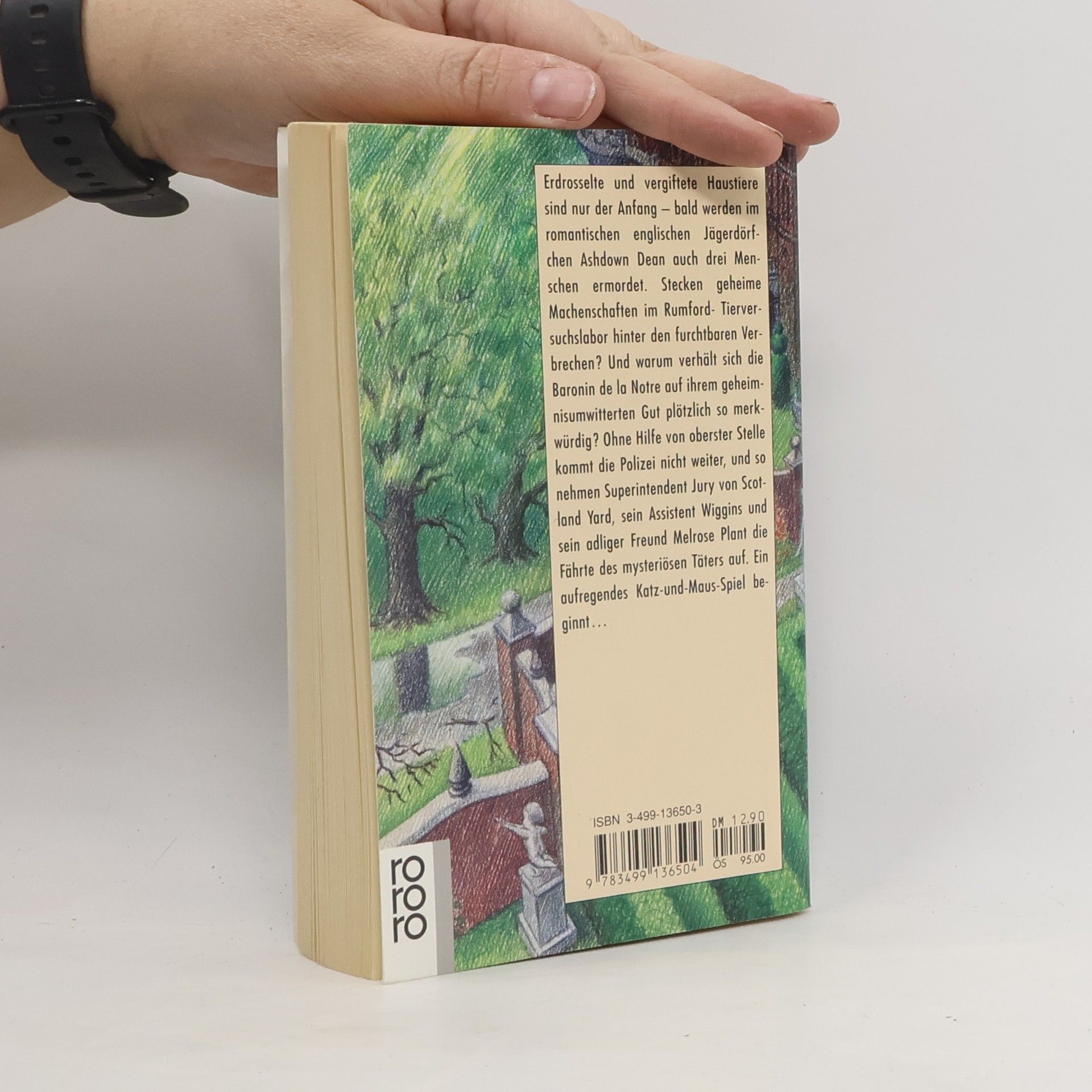 Erdrosselte und vergiftete Haustiere sind nur der Anfang - bald werden im romantischen englischen Jägerdörfchen Ashdown Dean auch drei Menschen ermordet. Stecken geheime Machenschaften im Rumford-Tierversuchslabor hinter den furchtbaren Verbrechen ? Und warum verhält sich die Baronin de la Notre auf ihrem geheimnisumwitterten Gut plötzlich so merkwürdig ? Ohne Hilfe von oberster Stelle kommt die Polizei nicht weiter, und so nehmen Superintendent Jury von Scotland Yard, sein Assistent Wiggins und sein adliger Freund Melrose Plant die Fährte des mysteriösen Täters auf. Ein aufregendes Katz-und Maus-Spiel beginnt.